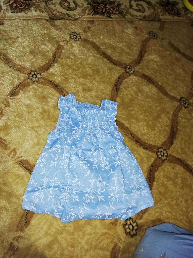 Die Farbe ist etwas anders, ansonsten ist das Aussehen gleich. Das Material ist gut, dünn, weich, Baumwolle sehr ähnlich, mit Stickerei. Tolles Kleid für den heißen Sommer. Die Größe ist klein, 100 passen einem Kind im Alter von 1,5 Jahren und einer Körpergröße von 80 cm