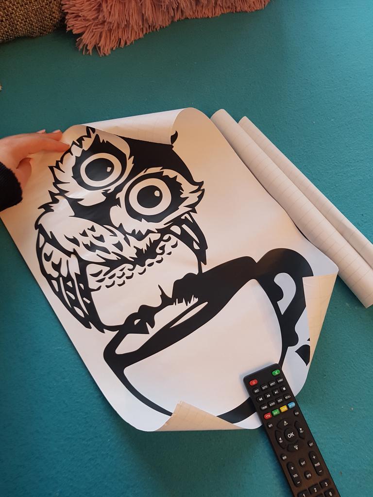 Lustige Cartoon-Eule, Tasse Tee, Kaffee, für Küche, Aufkleber, Heimdekoration, lebender Wandaufkleber