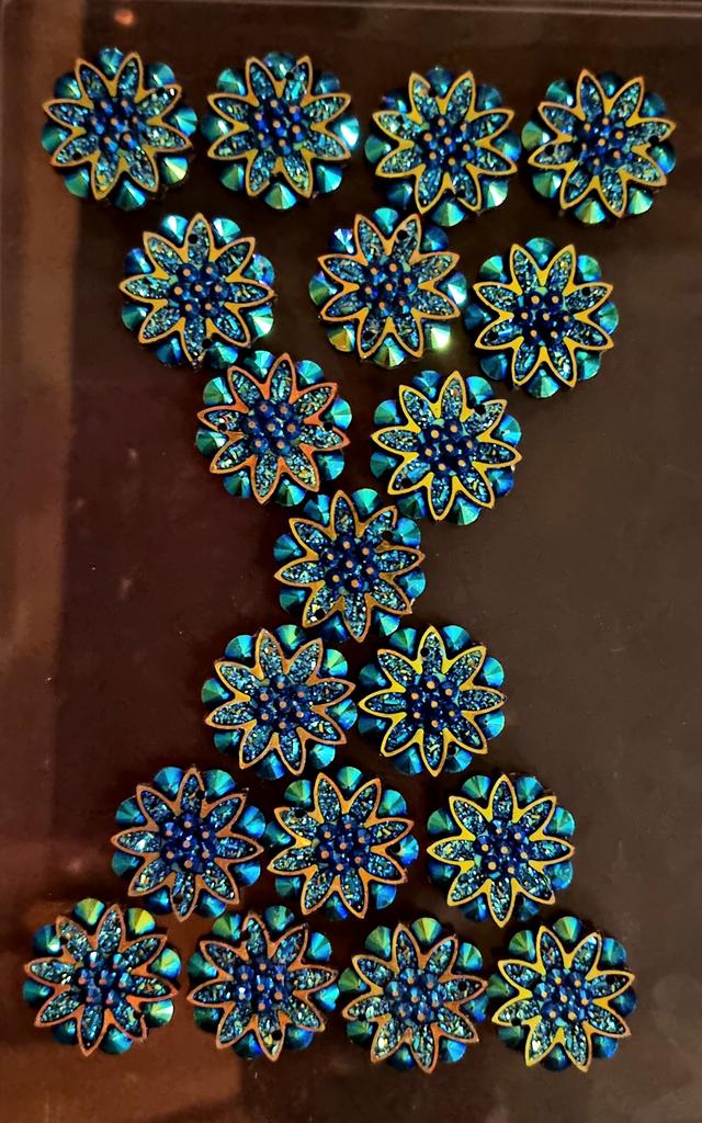 20 Stück 18 mm AB-Harz, Blumen-Strasssteine, flache Rückseite, Hochzeitsdekoration, 2 Löcher