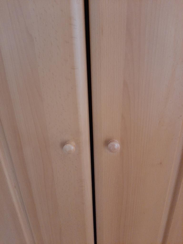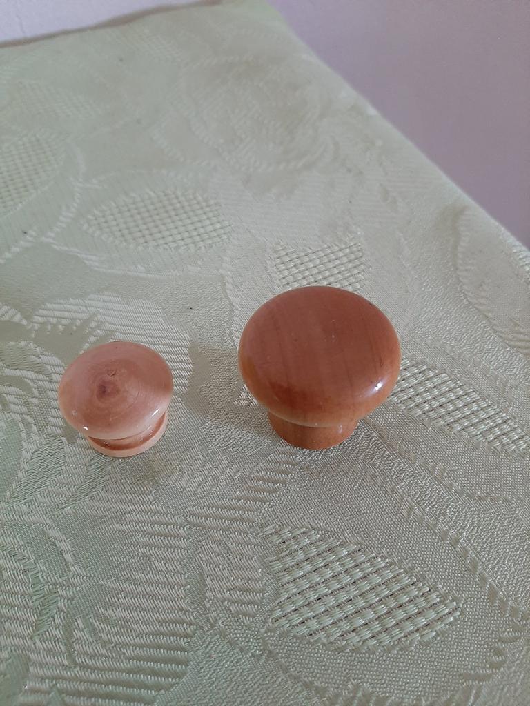Etwas kleiner. Dennoch top und sie passen farblich zum Schrank. Ich habe auch ein Foto von meinem Original Knauf zum Vergleich vom Schrank gemacht.