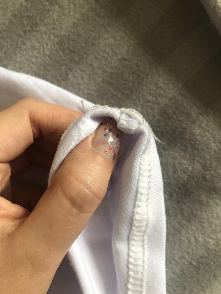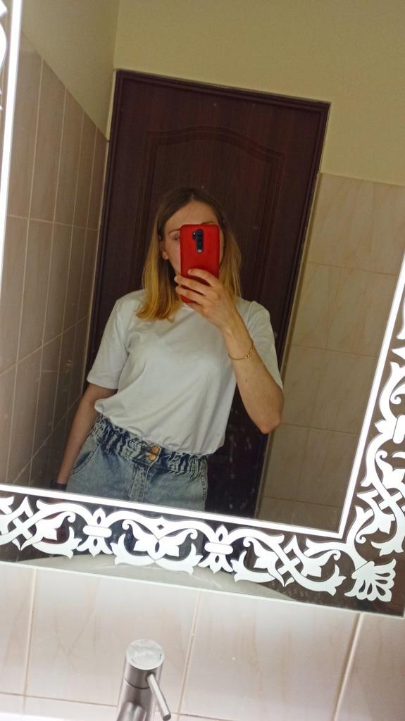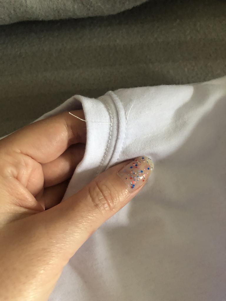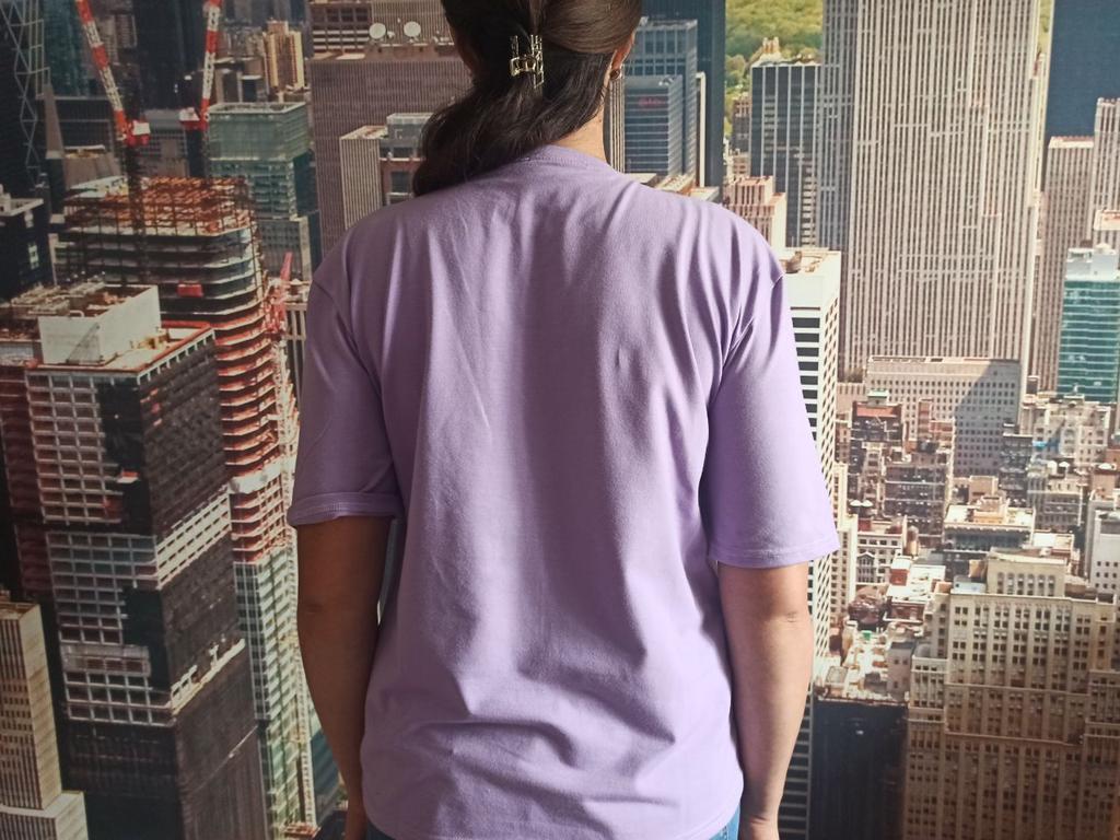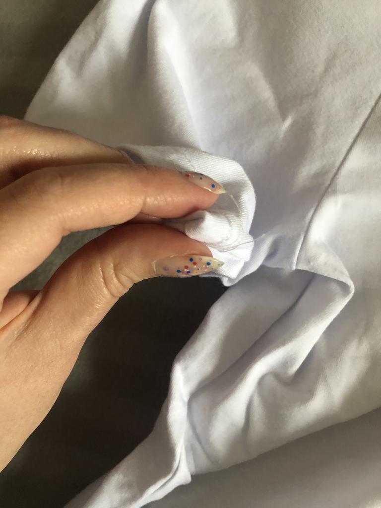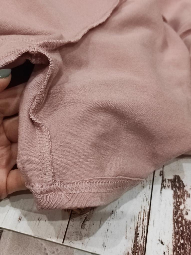 Gute Größe, lange Ärmel fast bis zum Ellenbogen, genau wie ich es wollte. Keine reine Baumwolle, dehnbar, aber insgesamt ein sehr gutes T-Shirt. Scheint nicht durch. Die Fäden waren ein wenig innen – vor allem von der Overlockmaschine. Ich habe es bereits gewaschen – es scheint nicht schief zu sein.