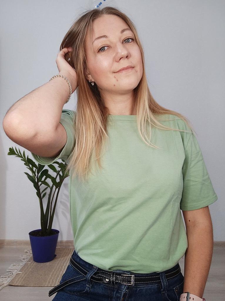 Das T-Shirt ist hochwertig, wirklich Baumwolle. Größe S sitzt frei bei einer Körpergröße von 164 cm, Auspuff 84 cm, Taille 65 cm. Ich empfehle