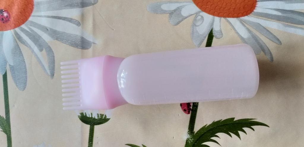 Die Flasche ist weich, der Kamm etwas hart. Auf der Flasche steht 600 ml