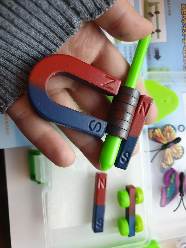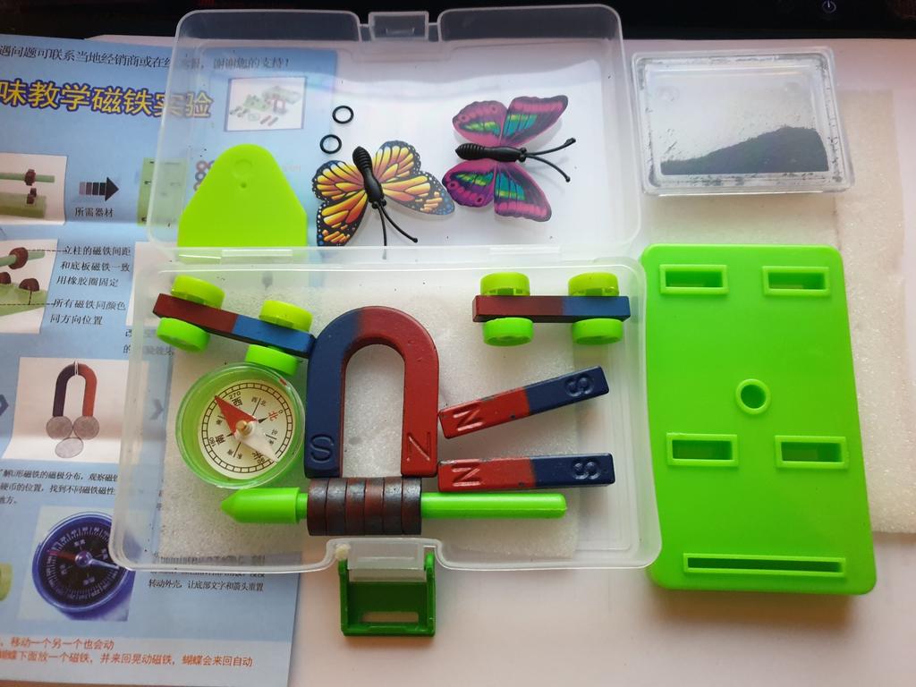 Ein tolles Magnetset zum Lernen und Spaß! Die Magnete sind von toller Qualität - sie sind viel stärker als ich angenommen habe :D. Darüber hinaus ermöglichen verschiedene Formen und eine Vielzahl an Zubehör, stundenlang neue Spiele zu erfinden und die Eigenschaften von Magnetfeldern zu entdecken. Dem Bausatz liegt nur eine Anleitung in Chinesisch bei, aber die gezeigten Fotos lassen erahnen, was los ist. Verschlossen ist das Ganze in einer stabilen Plastikbox, dank der es einfach ist, nach Ende der Experimente Ordnung zu halten. Alle Elemente, außer natürlich die Magnete, sind aus Kunststoff. Ich empfehle!