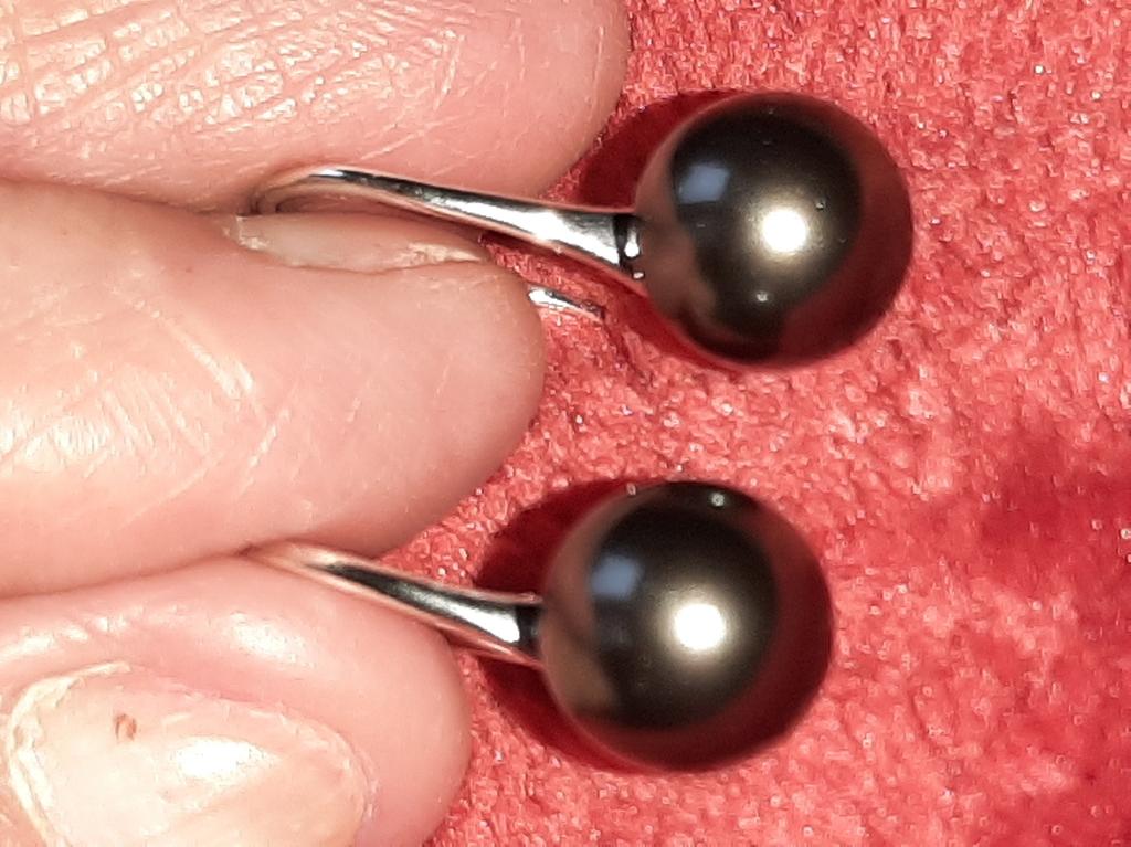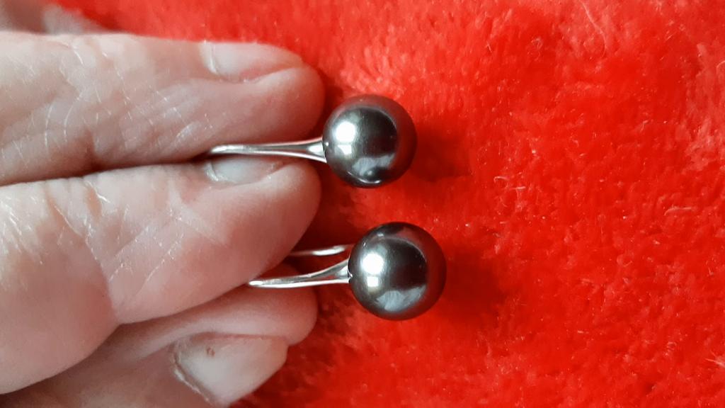 Heute angekommen. Habe sie in Schwarz bestellt da ich dachte sie sehen aus wie Tahiti Perlen. Leider sehen sie nur aus wie 2 schwarze Kugeln an einem Silberdraht. Hab mir mehr versprochen.