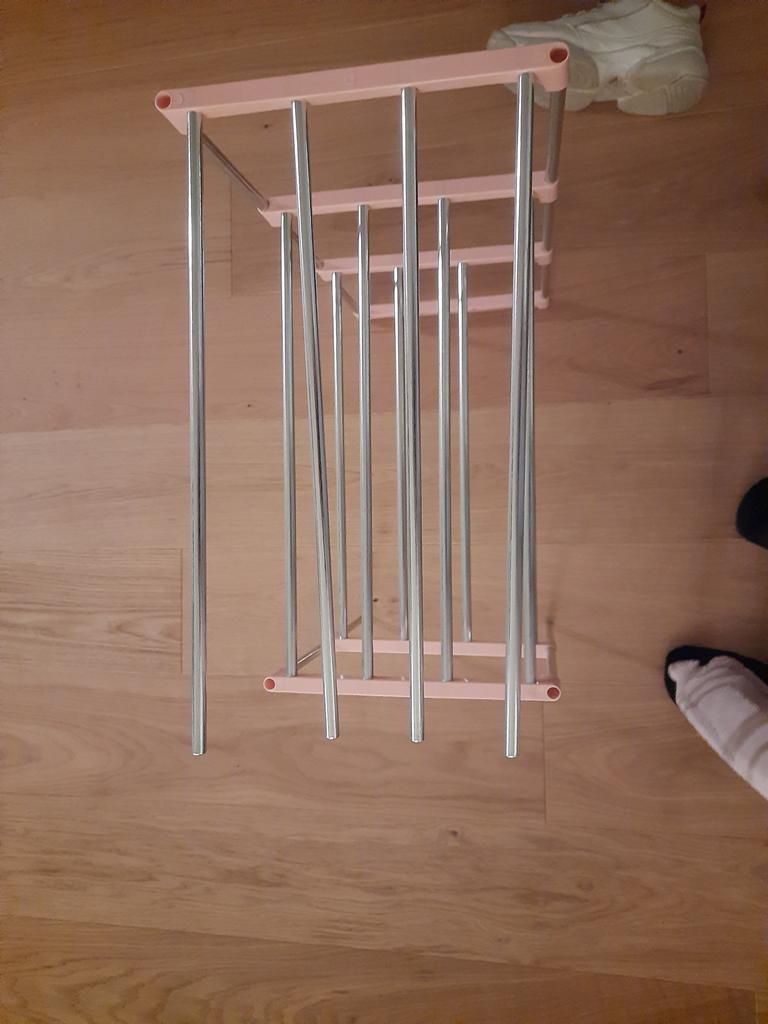 Schuhregal mit 4 Regalen, um Ihre Schuhe ordentlich zu halten. Ich habe dieses Schuhregal bestellt, um meine Turnschuhe in der Speisekammer zu verstauen, und es hat 5 Sterne bekommen. Es wird komplett zerlegt mit Edelstahlrohren und Kunststoffseitenteilen geliefert, ist aber sehr einfach zusammenzubauen und sehr sicher, nachdem alle Teile montiert sind.. Jedes Regal fasst 2 Paar Schuhe, also kann ich hier 8 Paar Turnschuhe verstauen und es sieht top aus!! Ich habe Blau gewählt, aber der Verkäufer hat andere Farben zur Auswahl. Ich bin sehr zufrieden mit diesem Kauf und werde ein weiteres Modul bestellen, um noch mehr Schuhe zu verpacken. Blog: www.pormenoresblog.pt Instagram: @pormenores
