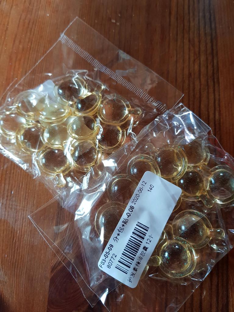 Einige nach Parfüm duftende ölige Substanz in den Kapseln. Tragen Sie es auf die Haarspitzen auf – scheint sie stärker zu machen
