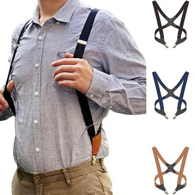 Hosenträger für Herren, breit, verstellbar, mit vier Clip-Ons, elastische Hosenträger mit X-Rücken