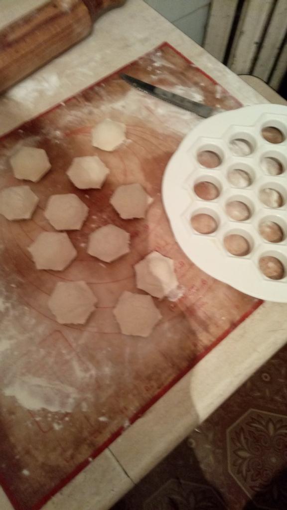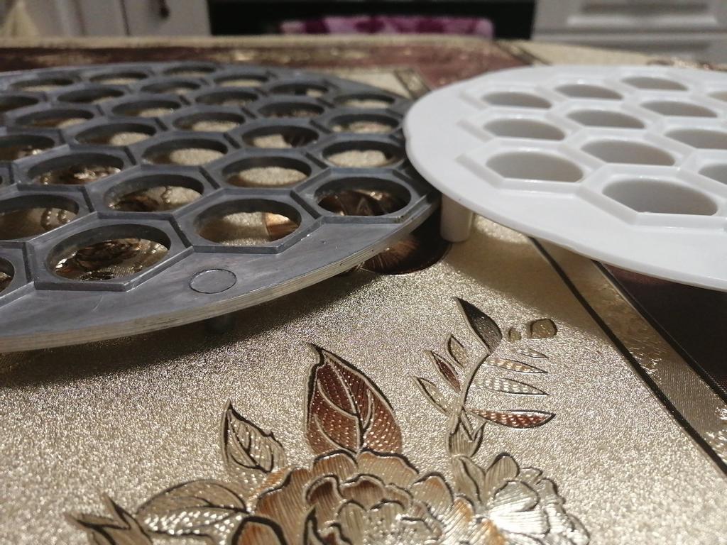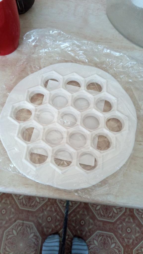 Ich habe versucht, mit meinem Mann Knödel zu machen. Nicht mit einem Nudelholz in die Mitte drücken, da sich die Form verbiegt. Es gibt Beine nur an den Rändern. , da die Form aus Kunststoff ist, biegt sie sich ein wenig. Und ich hätte gerne ein bisschen mehr.