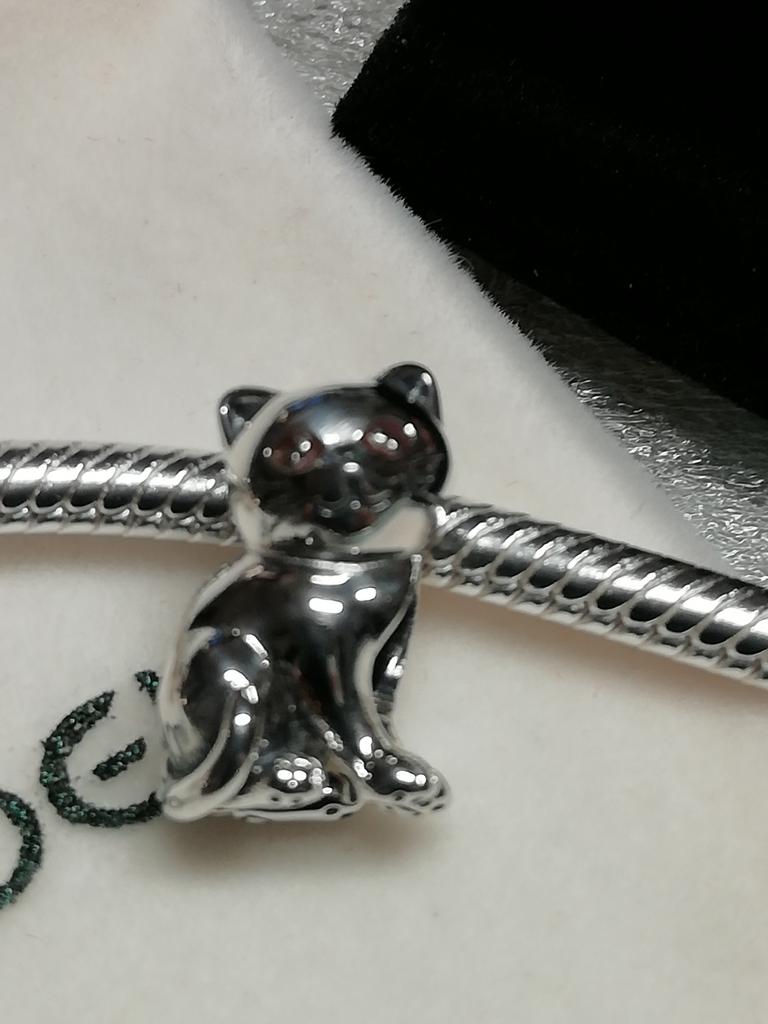 Das echt silberne Kätzchen ist toal süß und der Preis ist fantastisch. Ein schönes schwarzes Täschchen ist auch dabei. Ich bin total begeistert. 👍😍🦋