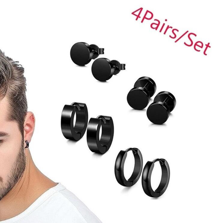 4 Paar Herren Damen Schwarz Edelstahl Ohrstecker Runde Hantel Ohrstecker Set