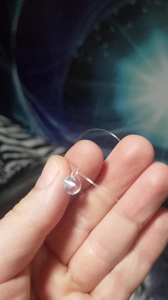 Ich hatte erwartet, dass es an einer dünnen Kette hängt, nicht an hartem Nylon, das nicht um den Hals liegt. Ich muss eine Kette kaufen.