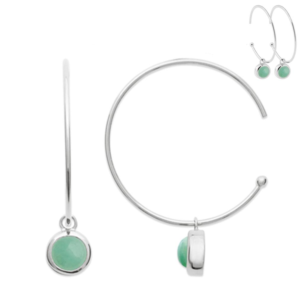 Les Trésors De Lily [Q6683] – Silberne Creolen „Cléopatra“ aus grünem Aventurin-Silber (rhodiniert) – 30 mm – 8 mm