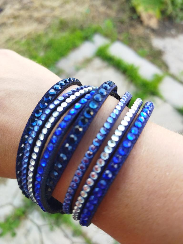 6-lagiges Slake-Samt-Bling-Leder mit Strass-Nieten für Damen-Armband
