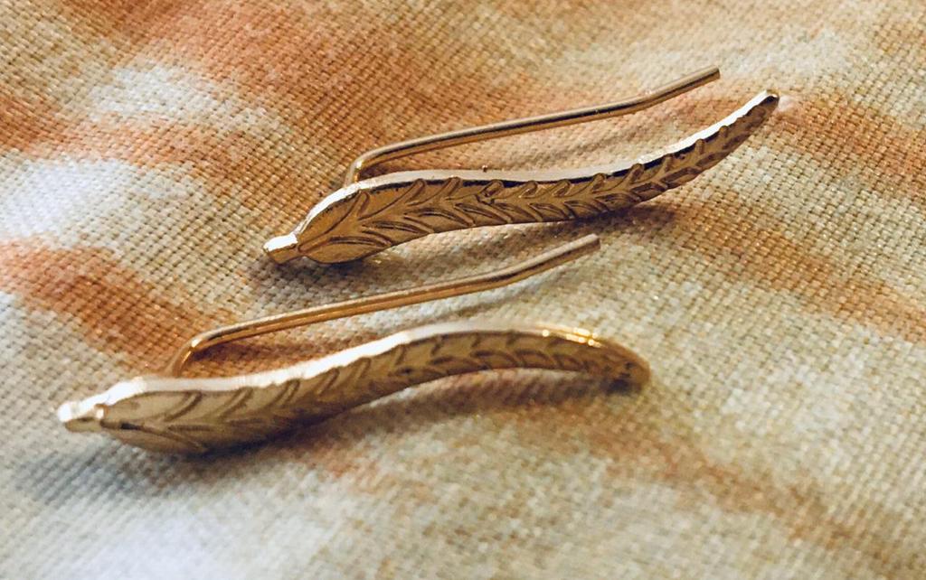 Blattschmuck Ohrringe Gold Feder Damen Ohrstecker Accessoires Geschenke