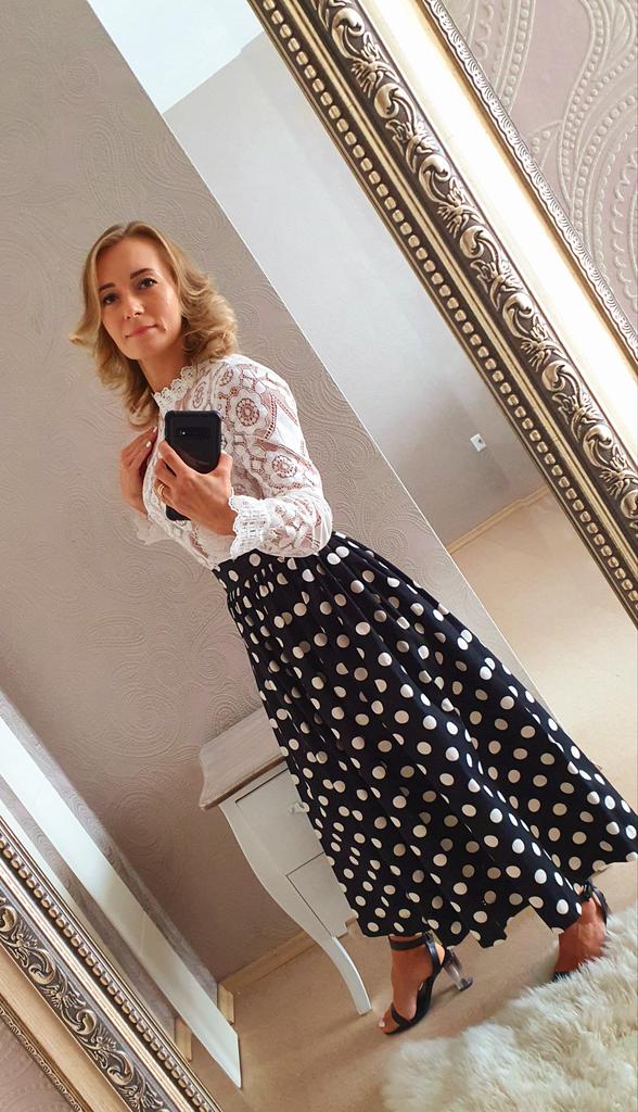 Perfekte 💖Bluse!! Hergestellt aus hochwertiger Baumwollspitze. Stoff ist hervorragend 😃👍 Ich habe Größe M gekauft, eine Nummer größer als ich normalerweise trage. Weil ich es gerne etwas oversized mag. Es passt genau so wie ich es wollte! Sieht toll aus, wenn Sie es in eine Hose oder einen Rock mit hoher Taille ziehen. Das Paket kam in 20 Tagen zu Hause an. Großer Verkäufer, rate ich! Habt ein schönes Wochenende meine Freunde 👯🎉