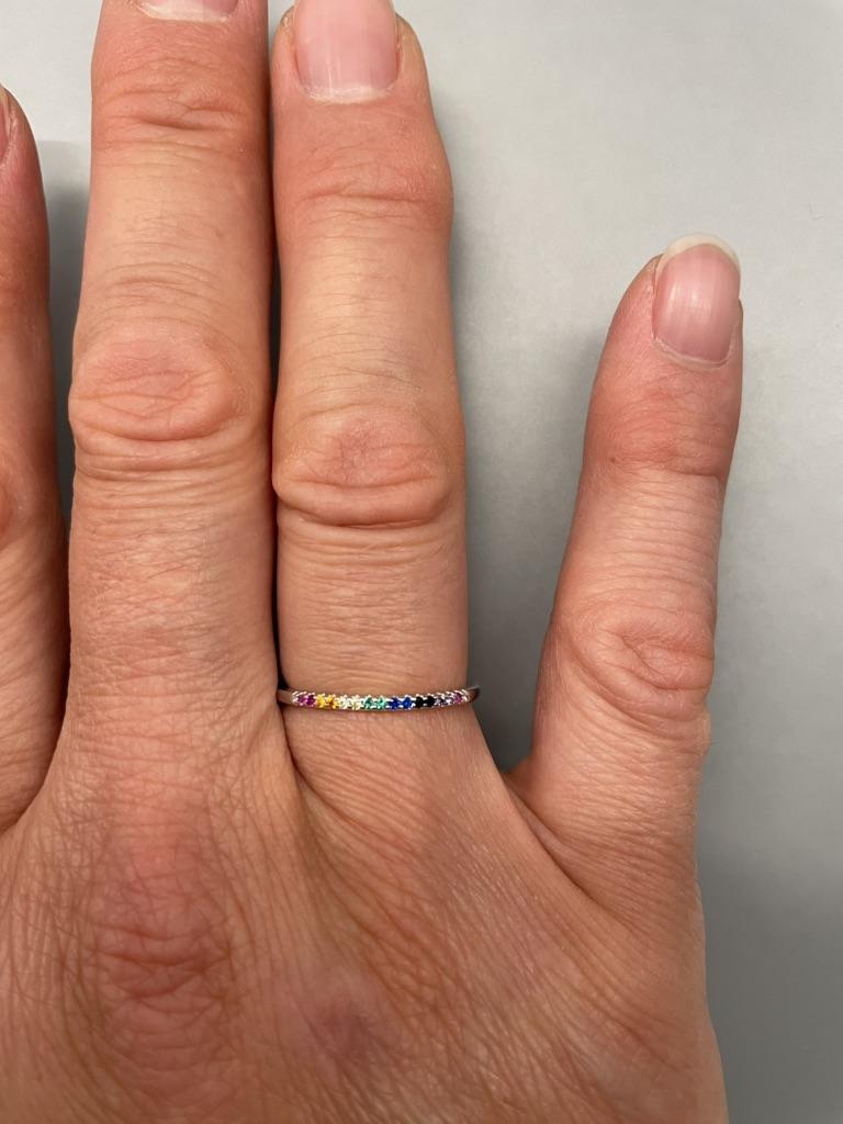 Ich bin etwas enttäuscht. Der Ring ist so zierlich,dass man mehrmals gucken muss um die Steinchen und die Farben zu erkennen. Die Größe passt. Lieferung war recht flott.