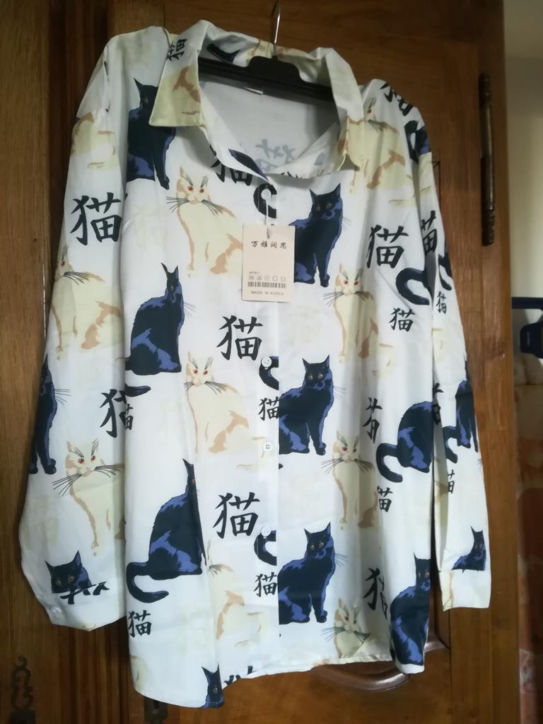 Harajuku Katze Bluse Frühling Langarm Drehen Unten Kragen Vintage Shirt Lose Blusen Mode Blusas