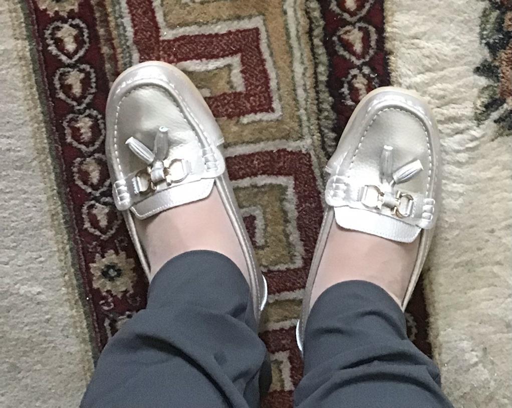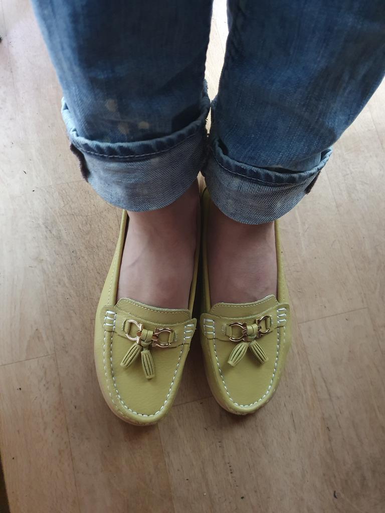 Sie passen, die Farbe und die Mokassins selbst sind schön, aber ich habe mit meinem rechten Fuß das gleiche Problem wie mit Ballerinas – sie sind etwas eng in der Weite.