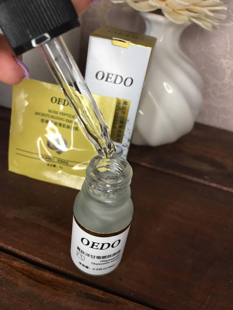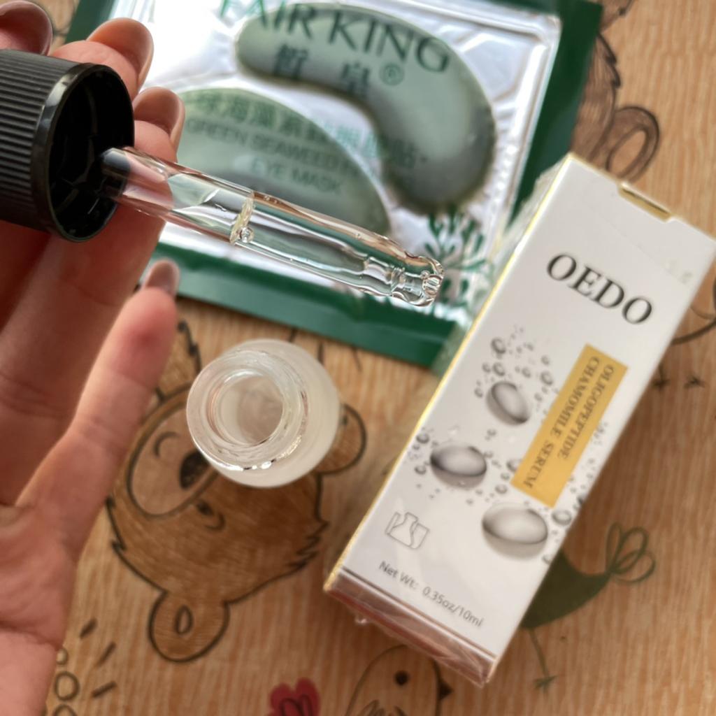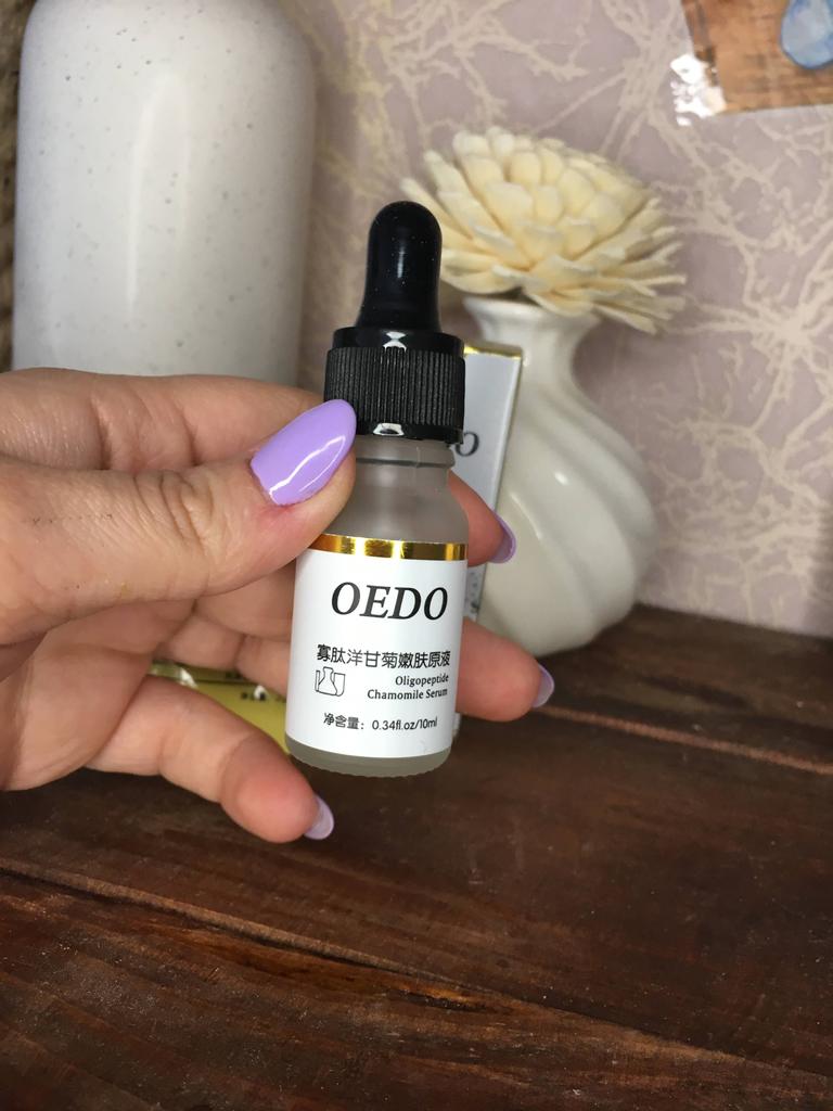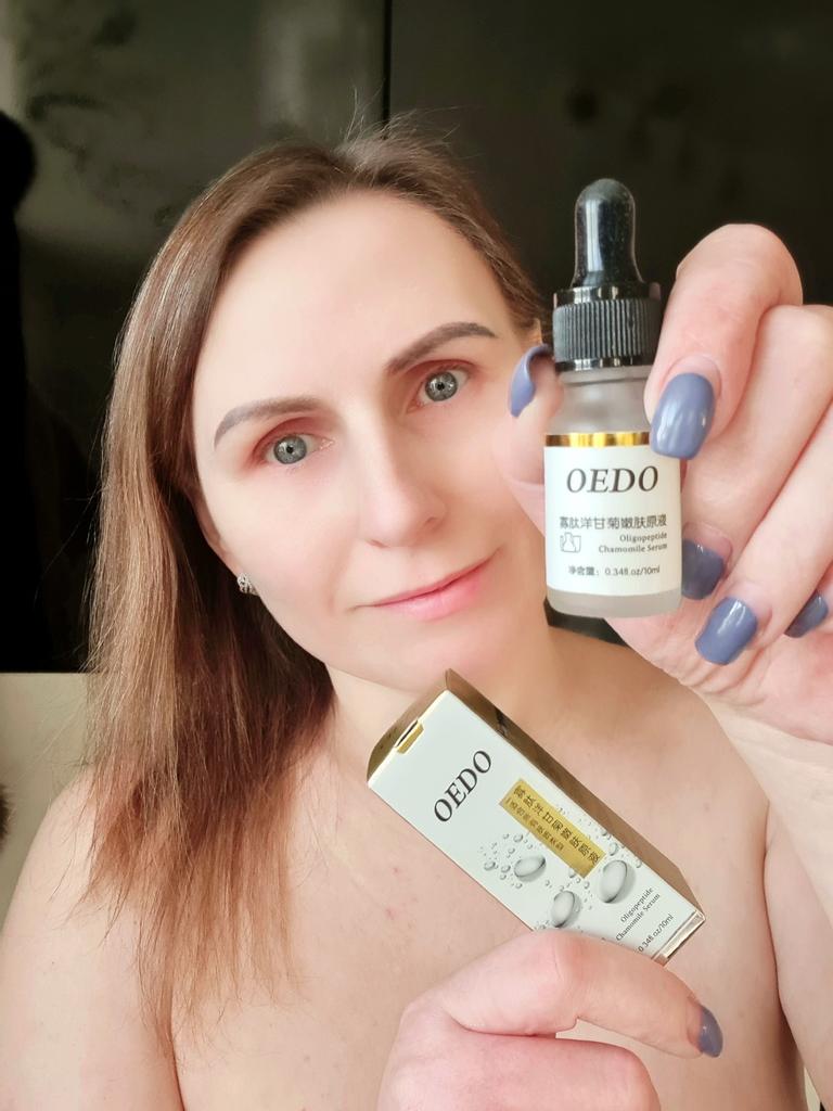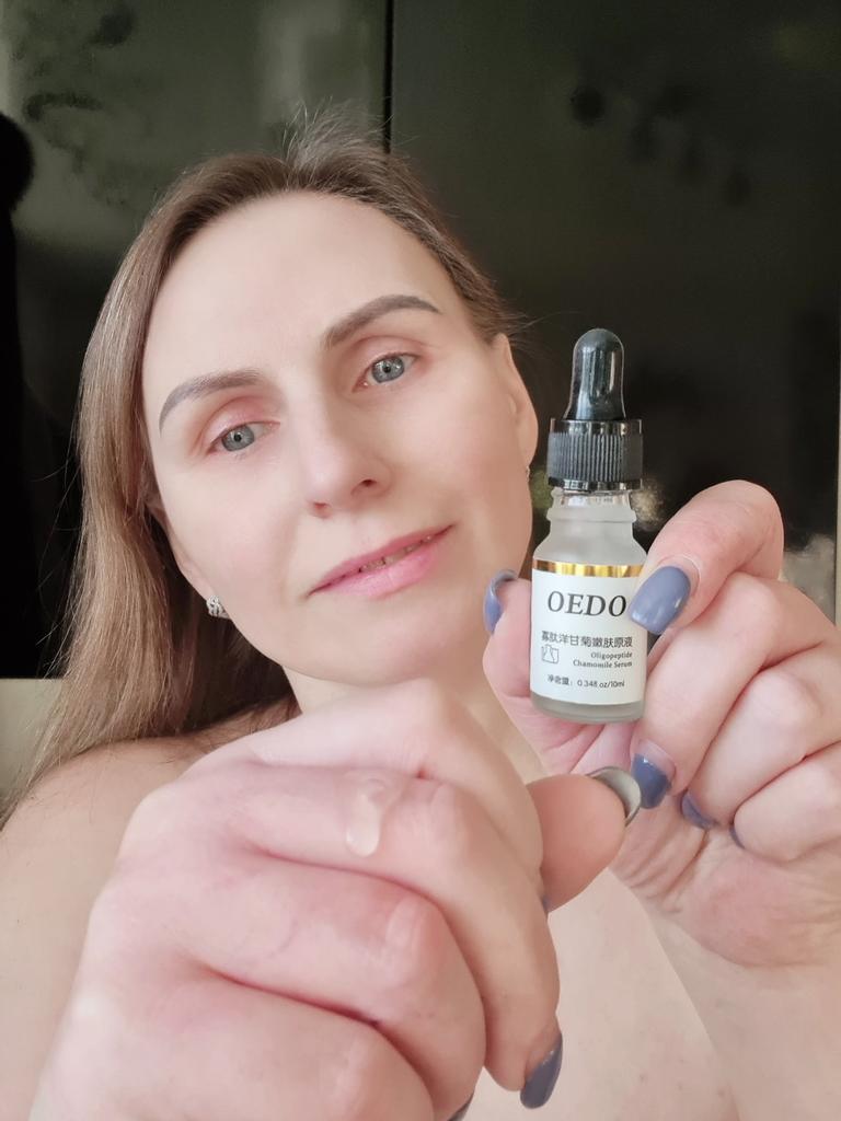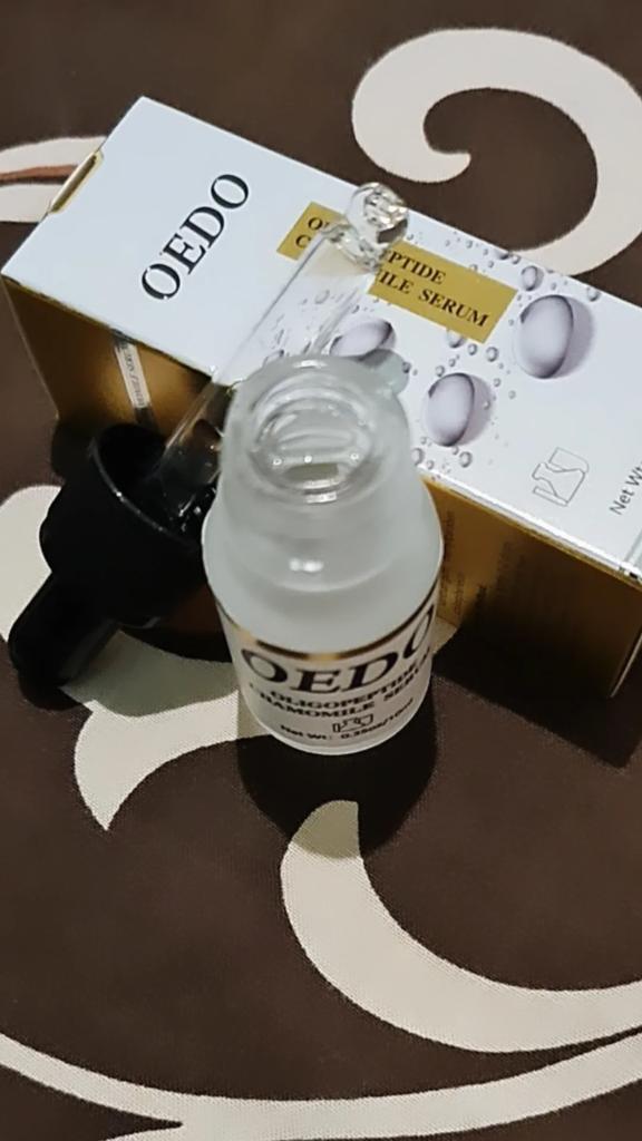 Oligopeptit-Kamillen-Gesichtsserum Marke: OEDO Was macht dieses Produkt: 🏵️ Weicht auf 🏵️ Spendet Feuchtigkeit 🏵️ Repariert die Haut gründlich 🏵️ Beseitigt Akne und beruhigt die Haut 🏵️ Reduziert Falten 🏵️ Verlangsamt den Alterungsprozess der Haut Diese Essenz schließt Wasser in der Haut ein. Wie benutzt man: Erwärmen Sie ein paar Tropfen zwischen Ihren Handflächen und drücken Sie Ihre Handflächen sanft 10 Sekunden lang auf Gesicht, Augen und Hals und massieren Sie sie dann ein, bis sie vollständig von der Haut aufgenommen wurde. Die Nettomenge beträgt 15 ml. Zieht so leicht und schnell in meine Haut ein. Es gibt kein fettiges Gefühl. Es ist fast geruchlos. Ich empfehle es 👍 ✏️ Wenn Sie eines kaufen, nachdem Sie meine Bewertung gesehen haben, hinterlassen Sie bitte einen Kommentar. Ich würde gerne wissen, ob meine Bewertung nützlich ist.