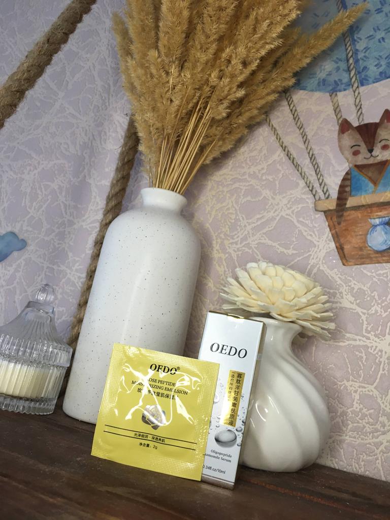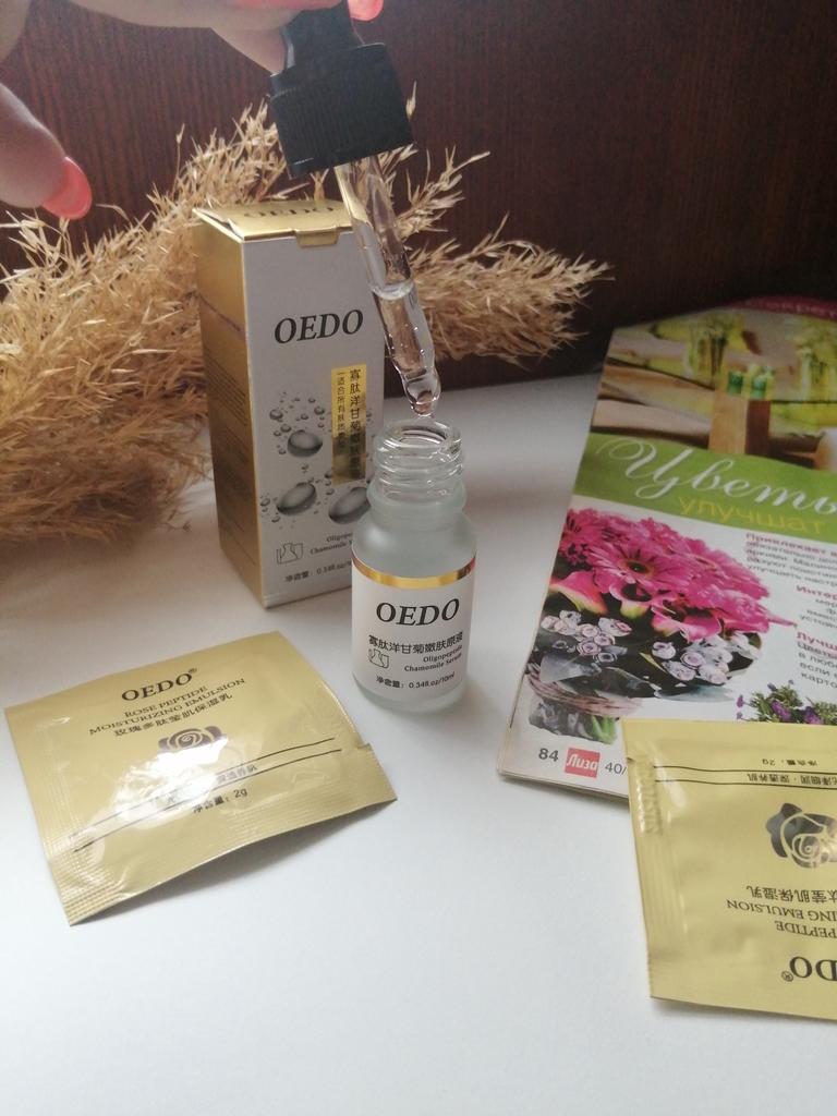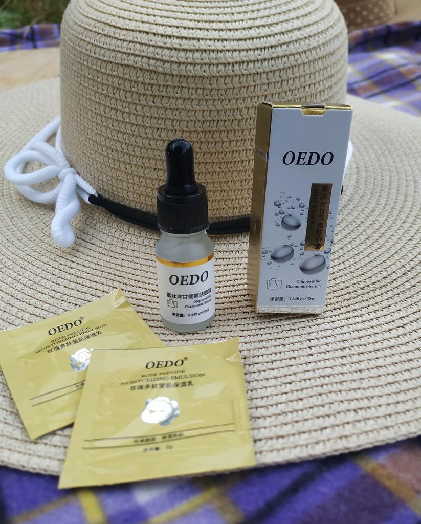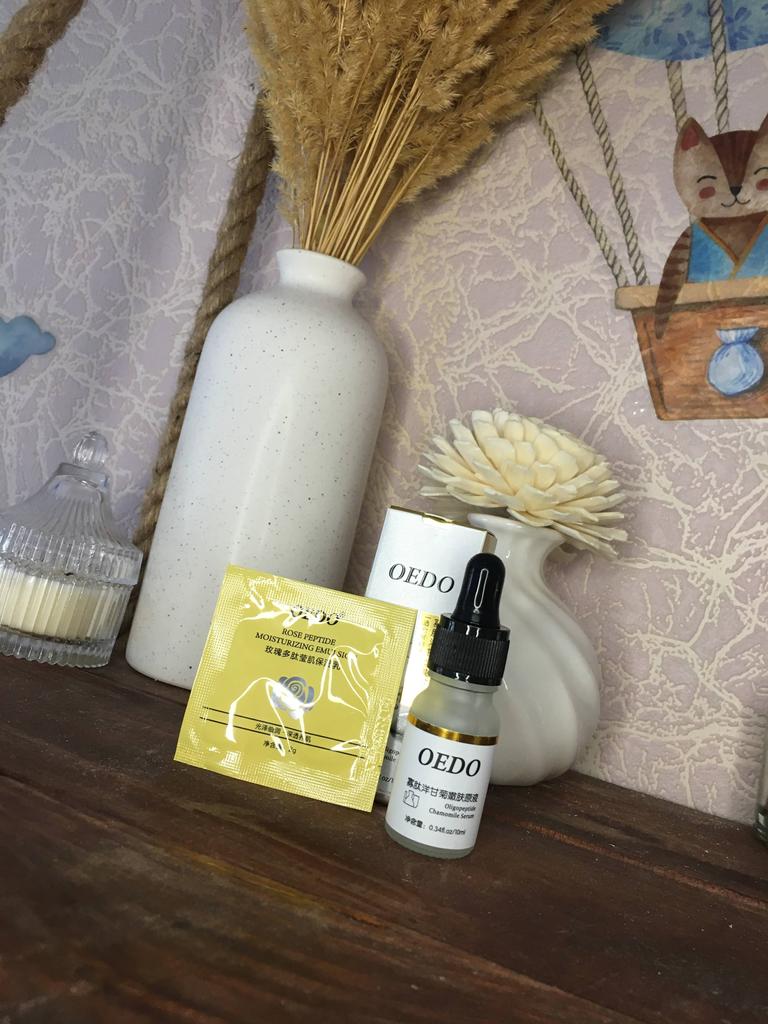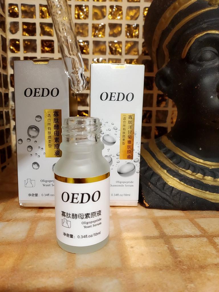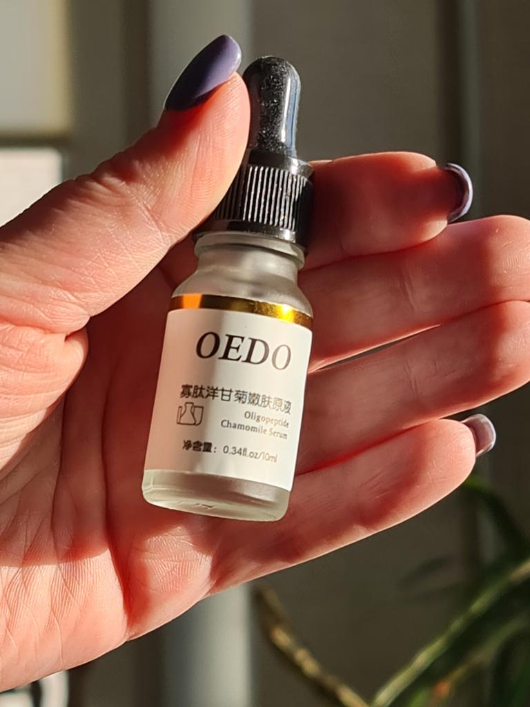 Oligopeptit-Kamillen-Gesichtsserum Marke: OEDO Was macht dieses Produkt: 🏵️ Weicht auf 🏵️ Spendet Feuchtigkeit 🏵️ Repariert die Haut gründlich 🏵️ Beseitigt Akne und beruhigt die Haut 🏵️ Reduziert Falten 🏵️ Verlangsamt den Alterungsprozess der Haut Diese Essenz schließt Wasser in der Haut ein. Wie benutzt man: Erwärmen Sie ein paar Tropfen zwischen Ihren Handflächen und drücken Sie Ihre Handflächen sanft 10 Sekunden lang auf Gesicht, Augen und Hals und massieren Sie sie dann ein, bis sie vollständig von der Haut aufgenommen wurde. Die Nettomenge beträgt 15 ml. Zieht so leicht und schnell in meine Haut ein. Es gibt kein fettiges Gefühl. Es ist fast geruchlos. Ich empfehle es 👍 ✏️ Wenn Sie eines kaufen, nachdem Sie meine Bewertung gesehen haben, hinterlassen Sie bitte einen Kommentar. Ich würde gerne wissen, ob meine Bewertung nützlich ist.