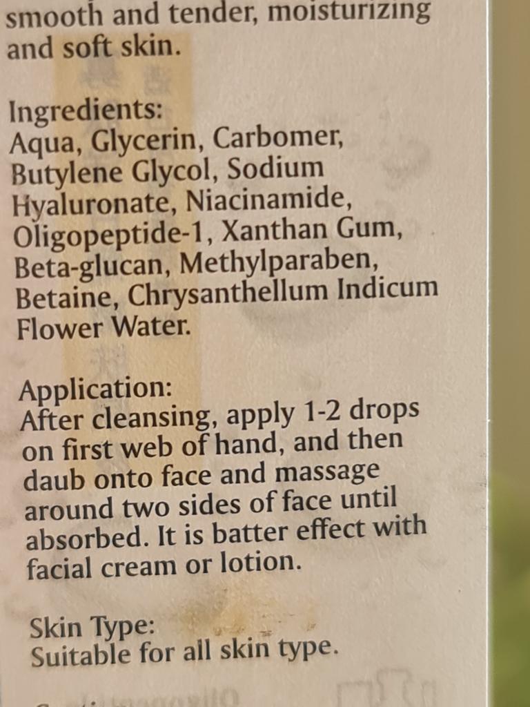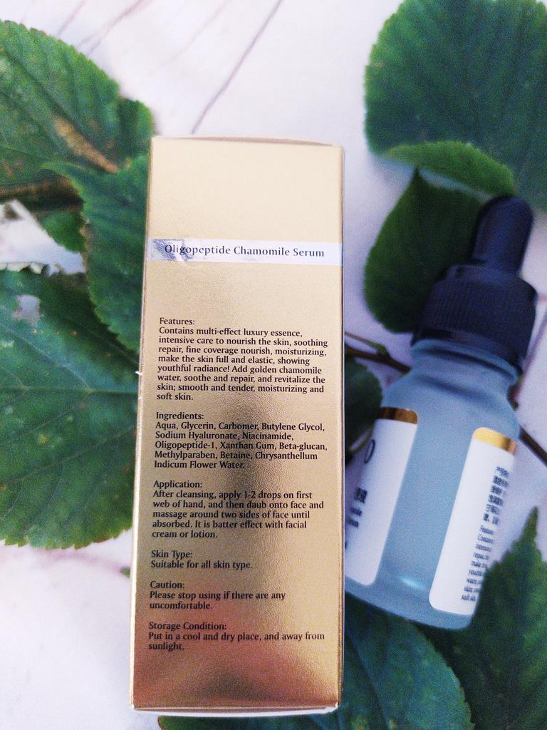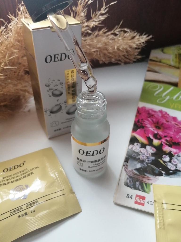 Serum mit Kamille, Oligopeptid und Niacinamid 🌼 Gute Zusammensetzung, gute Verpackung, praktische Flasche. Das Serum ist transparent, geruchlos, nicht klebrig. Der Verbrauch des Produkts ist gering. Augenklappen wurden verschenkt, vielen Dank. Zufrieden mit dem Kauf.