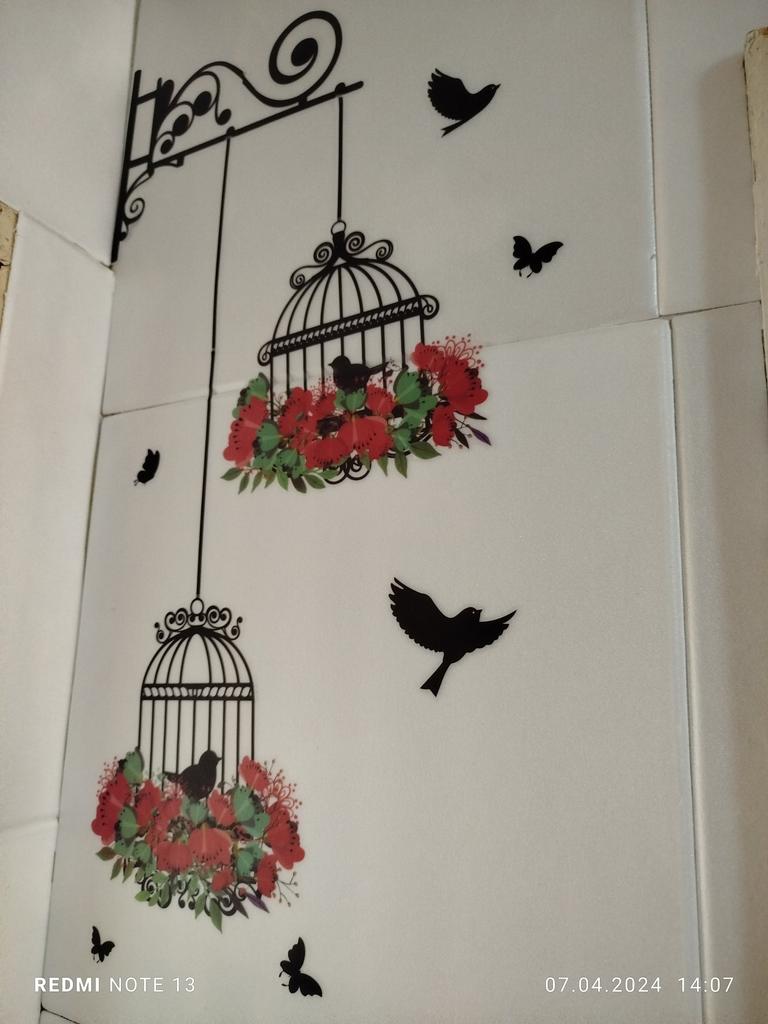 Exquisite bunte Blumen-Vogelkäfig-Wandaufkleber, Pflanzenkleber, Wohnzimmer-Tapete, Schlafzimmer, Fensterdekoration