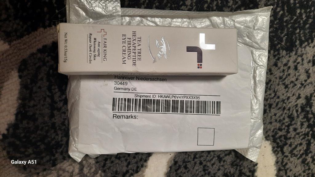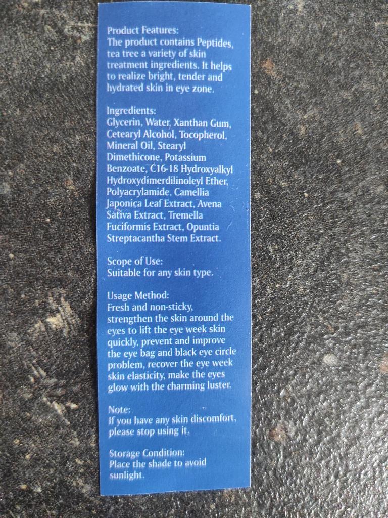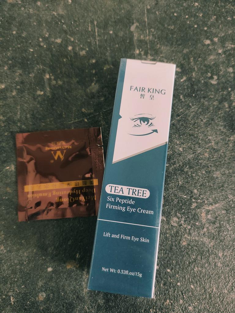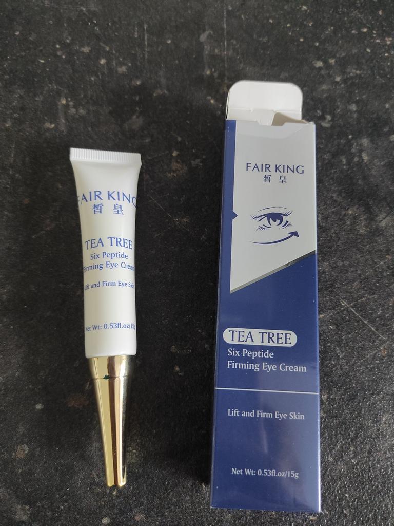 AUGENCREME Meine Schwester ist verliebt in diese Augenkontur, sie liebt eigentlich alle Produkte der Marke Fair King. Das Paket kam innerhalb von 19 Tagen mit Sendungsverfolgung in Italien an. Verpackt in einem Karton, kam es einwandfrei an. Auf der Verpackung sind Anleitungen und Inhaltsstoffe in englischer Sprache, Verpackungsdatum und Verfallsdatum (3 Jahre) sowie Strichcode abgebildet. Der angegebene Inhalt beträgt 15 gr. Haltbarkeit nach dem Öffnen 36 Monate. In der Schachtel die Kunststoff-Cremetube mit goldfarbenem Schraubverschluss und ein Beipackzettel mit den Produktinformationen. Es ist eine ausgezeichnete Augenkonturcreme, um die sehr empfindliche Haut um die Augen mit Feuchtigkeit zu versorgen und zu pflegen. Hervorragende Wirkung auf Tränensäcke und Augenringe. Natürlich ist es auch für Männer geeignet. Wirkt kleinen Fältchen entgegen. ❤️❤️❤️ Die Creme enthält Hyaluronsäure, Peptide 、 Teebaum und andere natürliche Inhaltsstoffe wie Camellia Japonica, Avena Sativa, Tremella Fuciformis, Opunthia Streptacantha Die Creme basiert auf Hyaluronsäure und Hyaluronsäure ist ein ausgezeichneter Feuchtigkeitsspender. stimuliert die Bildung von Kollagen und Bindegewebe. Hyaluronsäure verleiht unserer Haut Elastizität und hält sie mit Feuchtigkeit versorgt. Wie benutzt man Morgens und abends auf die gereinigte Haut auftragen und sanft von innen nach außen in das Auge einmassieren, bis es vollständig eingezogen ist. In der Tat noch besser, wenn Sie klopfen, damit es absorbiert wird. Es hat eine vollmundige Konsistenz, die aber sofort einzieht und die Haut nicht fettig hinterlässt. Es hat einen zarten Duft wie der von Babycremes. 😍 Hervorragende Make-up-Basis. Kaufempfehlung 👍