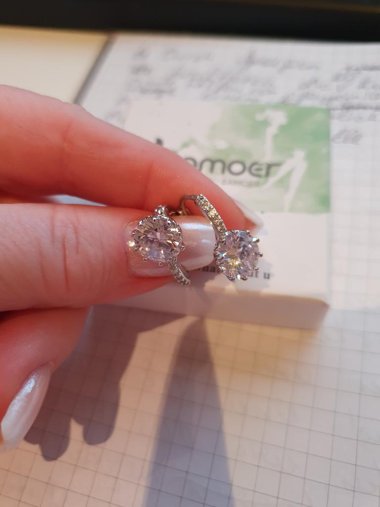 Von der Bestellung bis zur Lieferung hat es 19 Tage gedauert👍 Es handelt sich hier um wunderschöne, kleine Creolen in Silber mit eingearbeiteten Zirkoniasteinchen. Die Ohringe sind genau wie in der Beschreibung angegeben und auf den Händlerfotos abgebildet. Sie machen einen sehr guten und wertigen Eindruck. Sie sind super verabeitet und die Verschlüsse der Creolen funktionieren auch ohne Probleme und halten gut. Die Creolen haben einen Durchmesser von 1,5 cm und sind damit nicht zu Klein. Sie sind wirklich wunderschön😍👍 Von mir gibt es hier 5⭐⭐⭐⭐⭐ und eine klare Empfehlung für Händler und Produkt. Und ich bedanke mich ganz Herzlich für das schöne Geschenk das beigelegt wurde😊 Der Ring ist wirklich schön und passt 👍