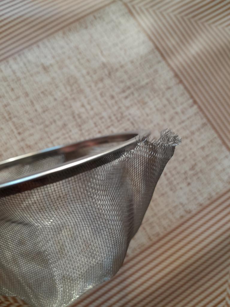 Das Sieb ist gut, aber es kam ganz zerknittert und schief an, ich weiß nicht, vielleicht wird es mit der Zeit gerade