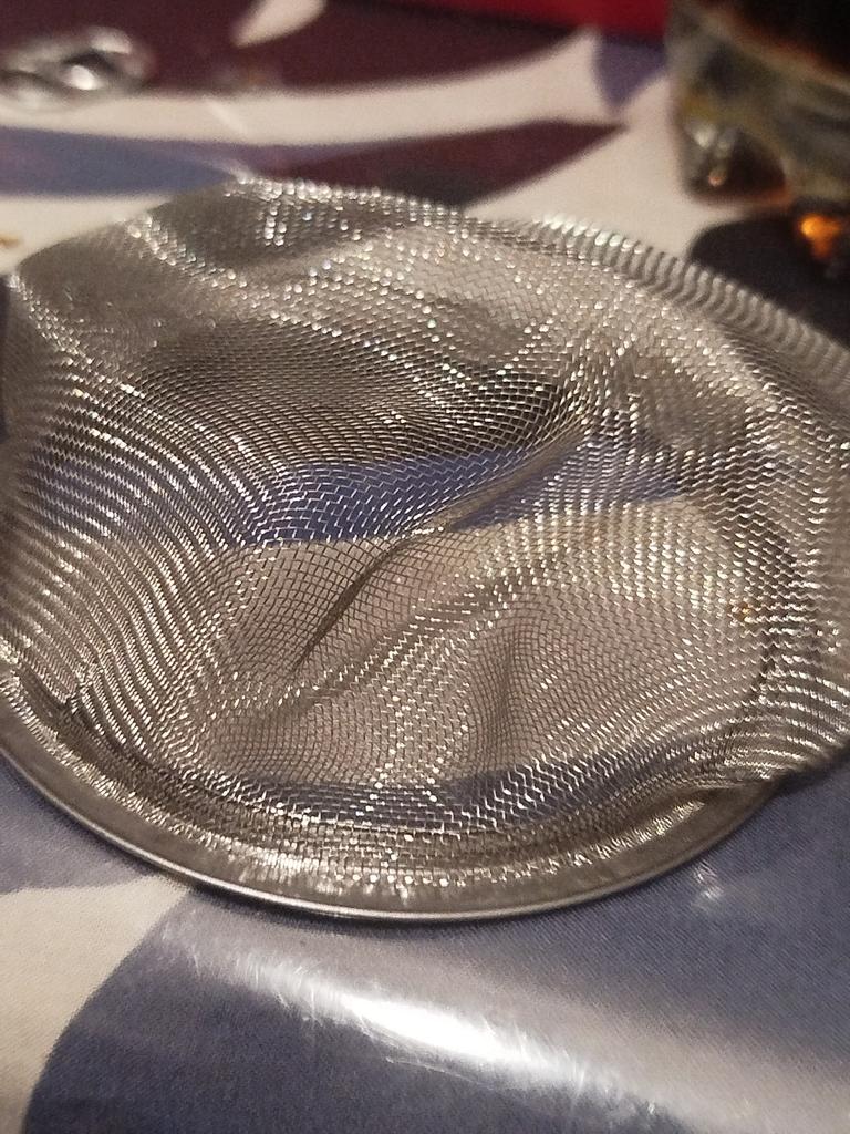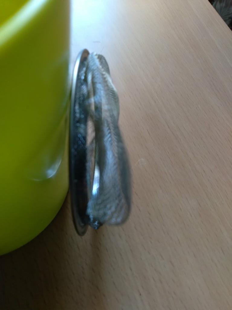 Das Sieb wurde zu einem Pfannkuchen zusammengedrückt...