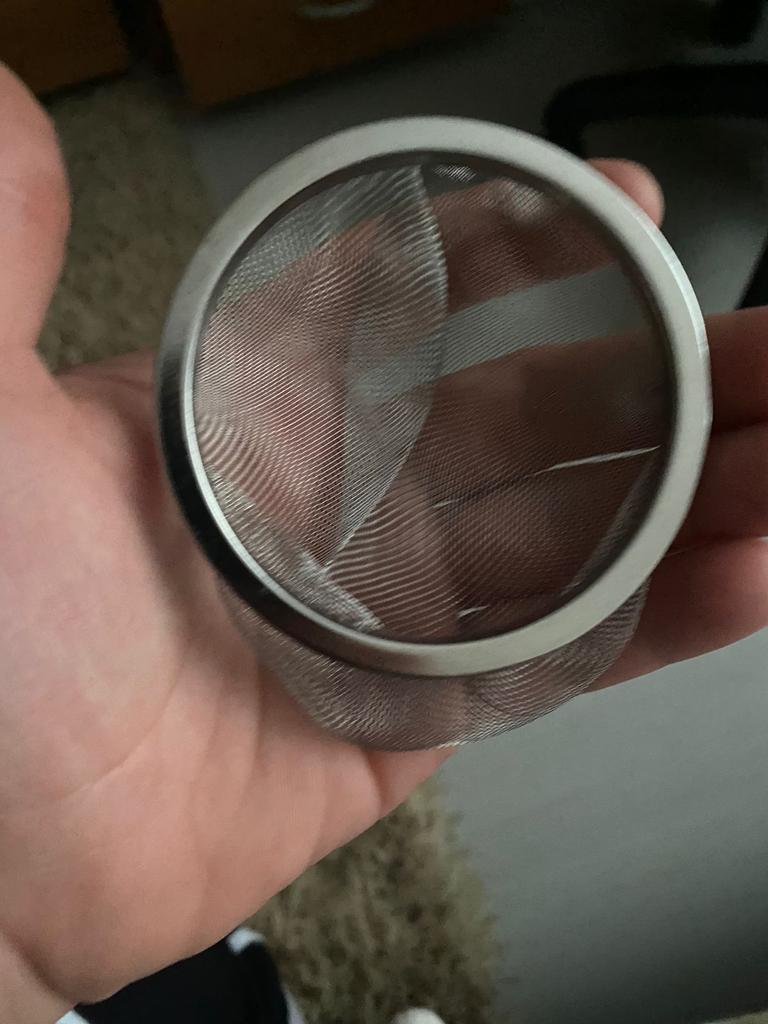 Die angegebene Größe wird am äußeren Rand des Randes gemessen, also fällt das Netz tatsächlich viel kleiner aus, was man berücksichtigen sollte, denn mein 5-Zentimeter-Netz passt nur auf den breiten Flaschenhals. Leider gibt es nicht genug Tassen für alle Tassen im Haus.