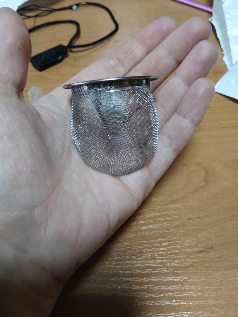 Das Sieb kam hoch! Gut gemacht, wer hat auf den Fotos die Außen- und Innengröße der Krawatte angegeben! Dadurch war es möglich, ein Sieb exakt in der Größe auszuwählen! Danke Jum und verantwortungsbewusster Verkäufer!