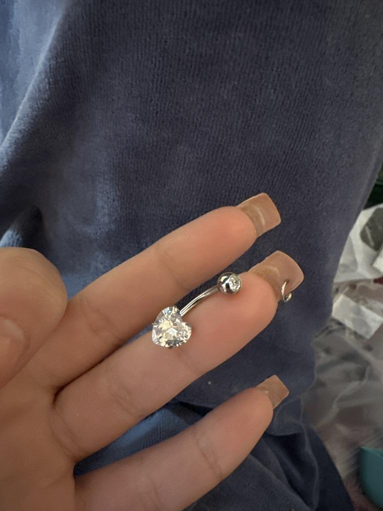Kaufen Sie 2 und erhalten Sie 1 Gratis Bauchnabelringe aus 316L Chirurgenstahl 14 g, klarer Diamant, Zirkon, CZ, Bauchnabelringe, Bauchschmuck, Liebesherz, Weiß-Roségold