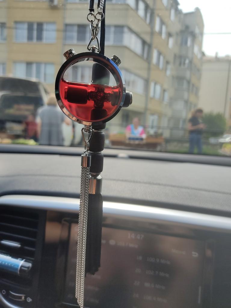 Komplette Flüssigkeit - keine, riecht nach billiger Flüssigseife. Ich füllte es mit ätherischem Zitronenöl und befestigte es mit einem Magneten am Deflektor.