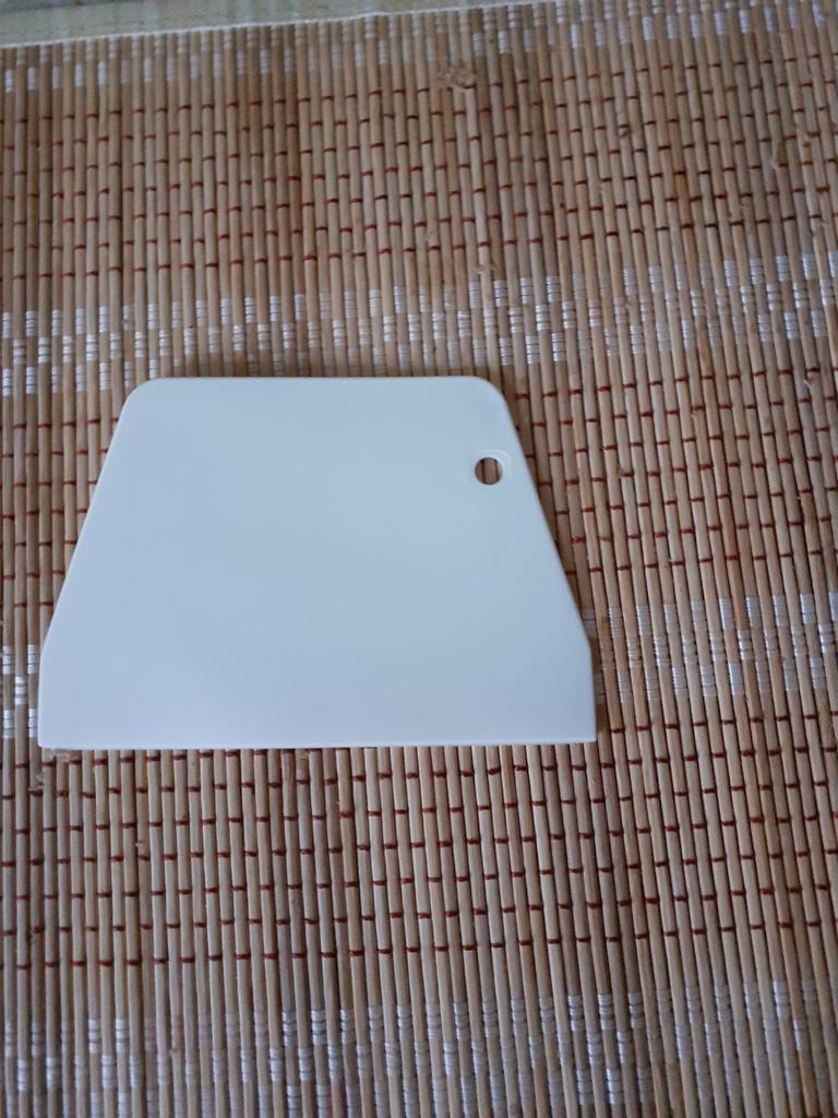 Ein kleines weißes Stück Plastik ist ein Teigmesser. Ich habe nicht versucht, es zu verwenden.