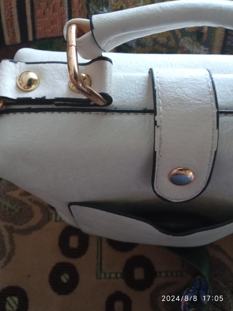 Die Handtasche ist schön, bequem, es gibt eine Tasche außen, 2 innen, zwei Griffe, einer an der Schulter mit Muster.