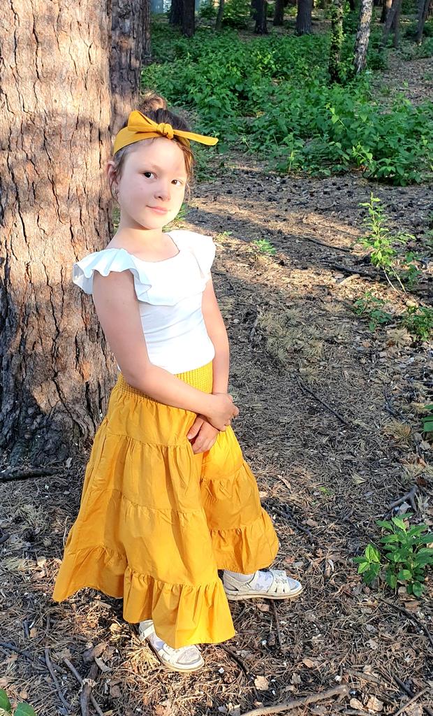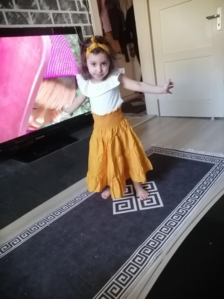 Der Rock ist sehr hübsch, passt wunderbar zu meinem kleinen Mädchen. Das Top sieht klein aus, obwohl es ihr sehr gut passt. Das kleine passende Stirnband ist das kleine Extra, über das sie sich sehr gefreut hat! Ich empfehle !