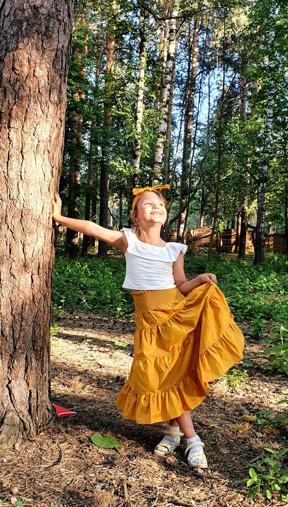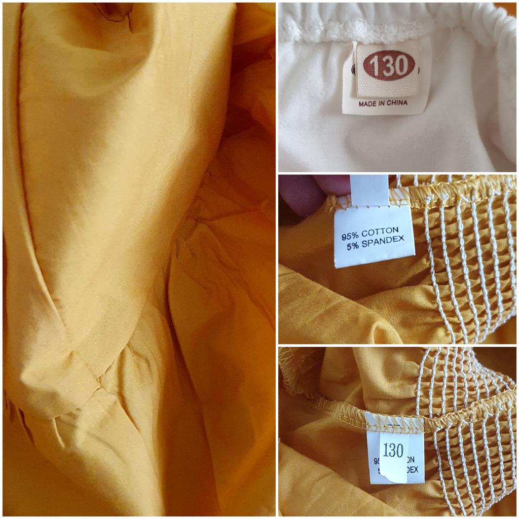 Größe 6-7 Jahre bestellt. Meine Tochter ist fünf und es passt gerade so... Das Haarband zum binden etwas zu klein, man bekommt keine Schleife hin, nur einen Knoten. Sieht bedingt sch... aus...