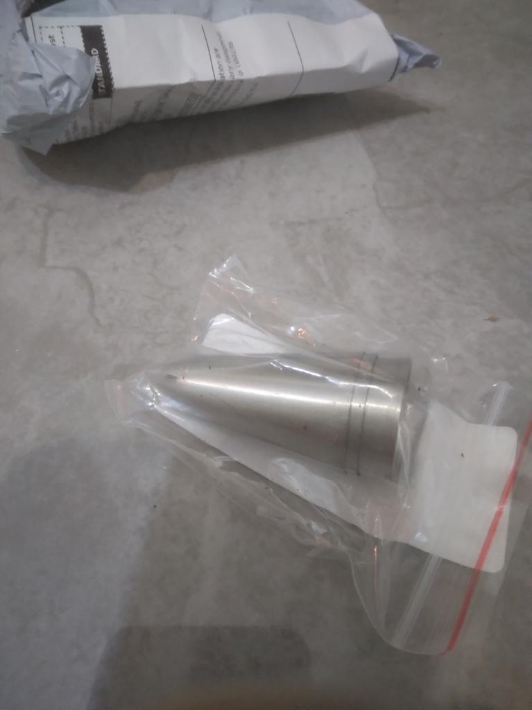 Lieferung von Waren in die Ukraine in einem Monat. Bei der Post abgeholt, vorher kam eine Viber-Nachricht. Die Düsen sind mittelgroß, verglichen mit der, die ich habe. Die Klebestelle ist von der Mitte aus sichtbar.