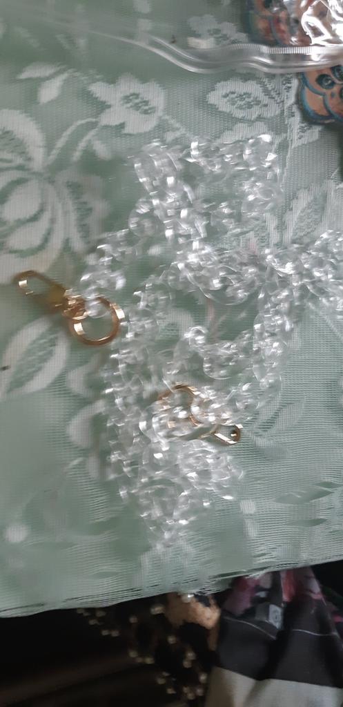 Hübsche Kette mit transparenten Kunststoffgliedern. 💝💘👏 Sehr gut geschützt für den Transport, originell und hübsch. 😜💝💐 Perfekt für einen Abend mit Clutch oder Minaudière. 👏💝💐 Der Karabiner kann dank des sich öffnenden Rings entfernt werden. 👅👏 Ich empfehle sehr. 💝👏💘