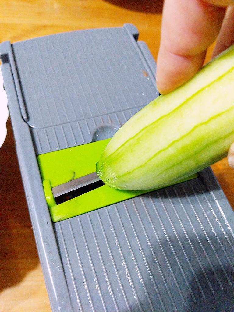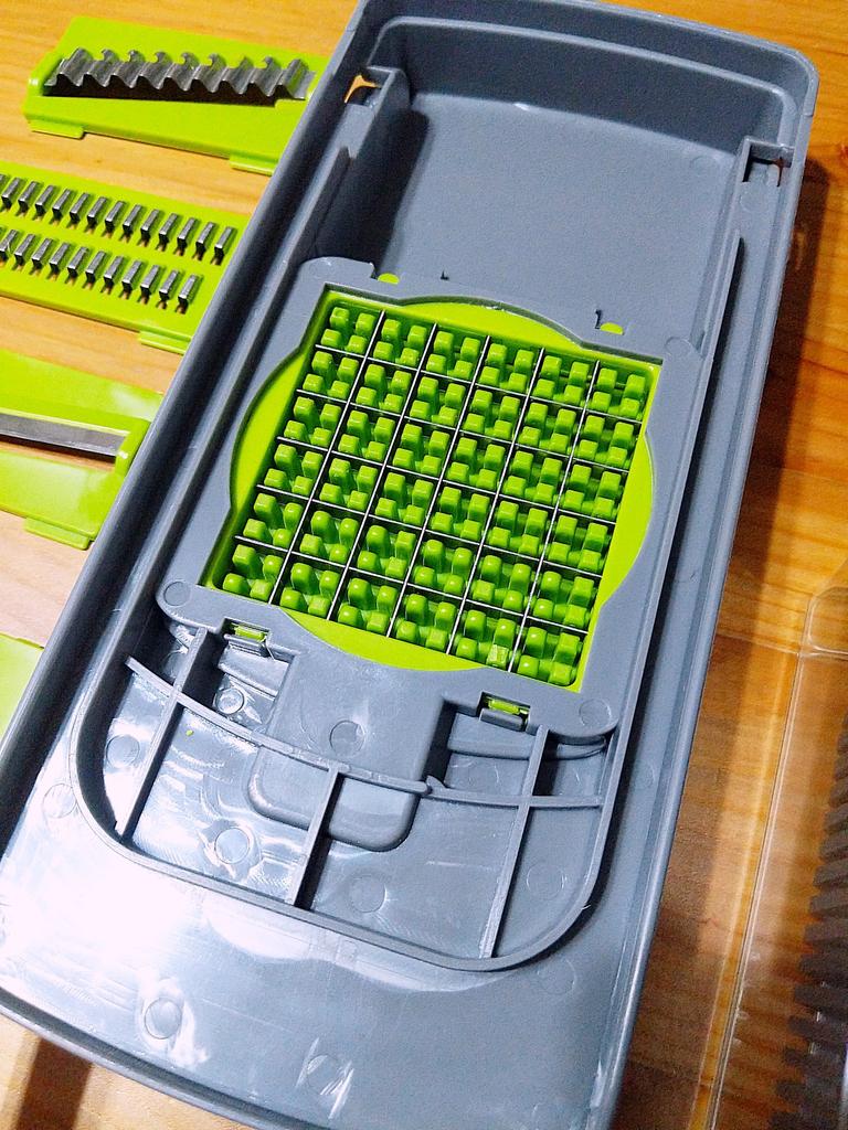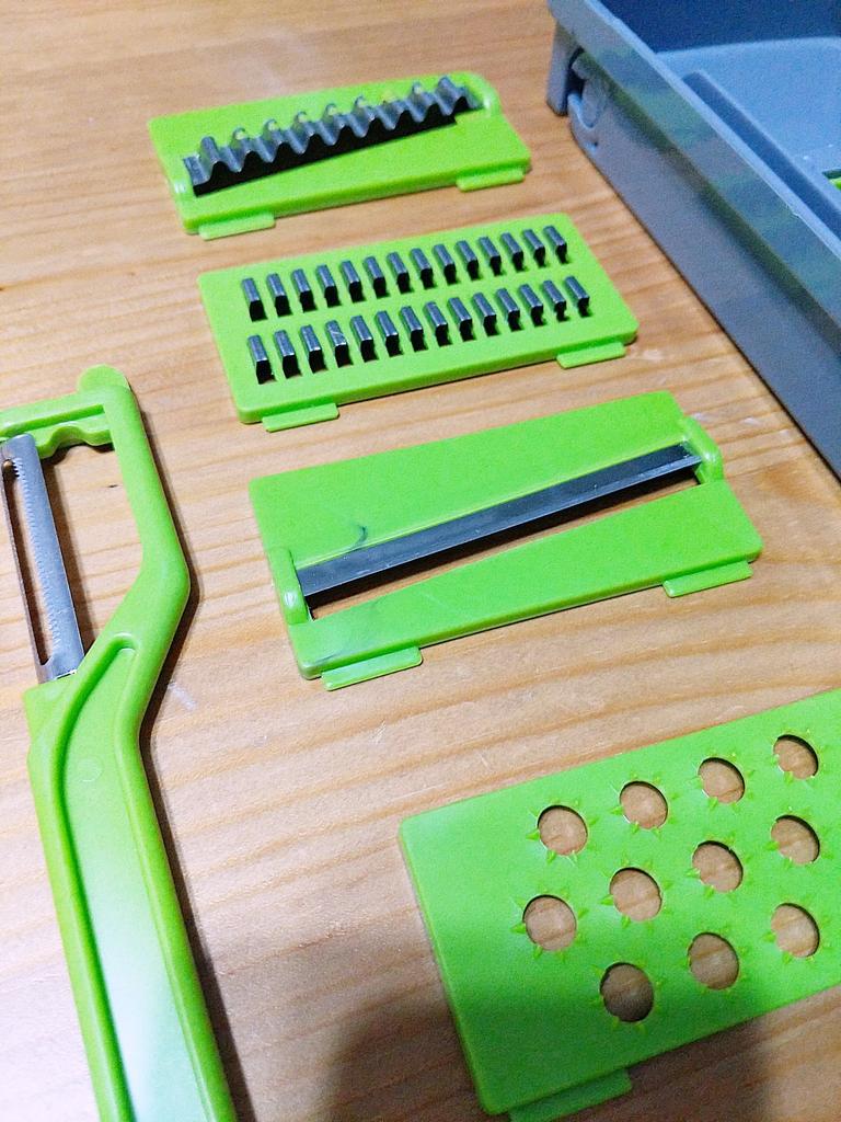 Manuelle Gemüsemandoline, superscharf, aber sehr clever, um in der Küche mit viel Schneidzubehör zu helfen