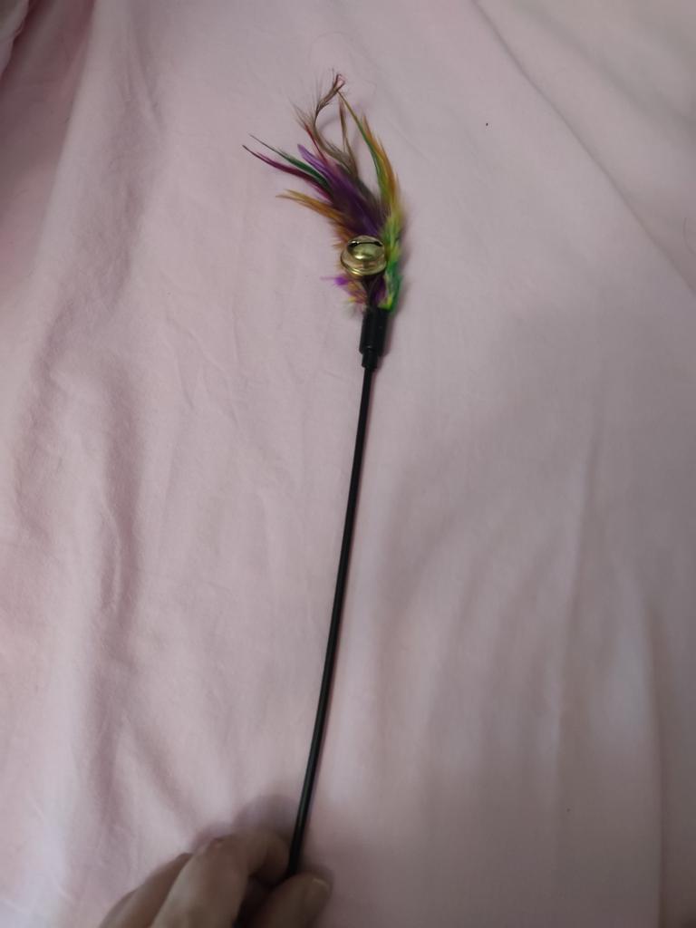 Kleiner lustiger Feder-Rasselstab für die Katze! Ich nehme schon nicht zum ersten Mal mehrere Stück, die Katze liebt sie!!!