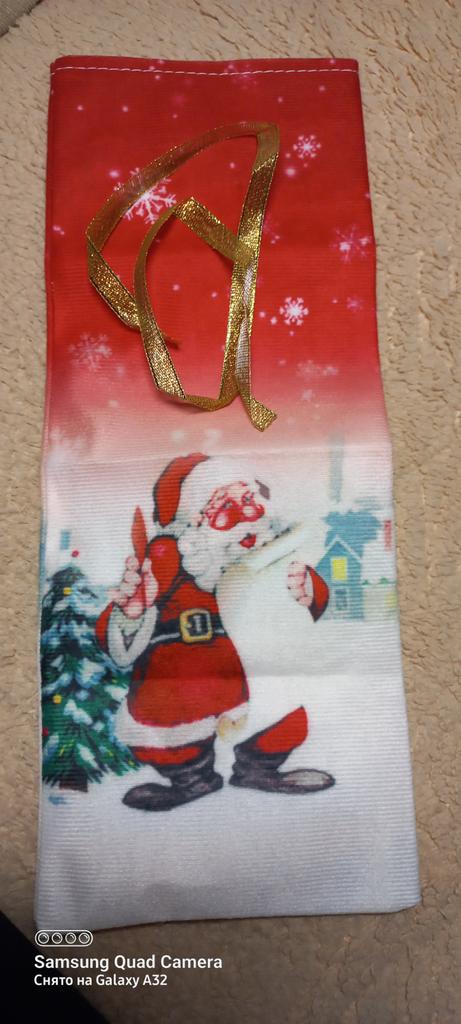 Eine schöne Tasche für Wein für das neue Jahr bereiten wir im Voraus vor, das Produkt erfüllt die angegebenen Anforderungen.