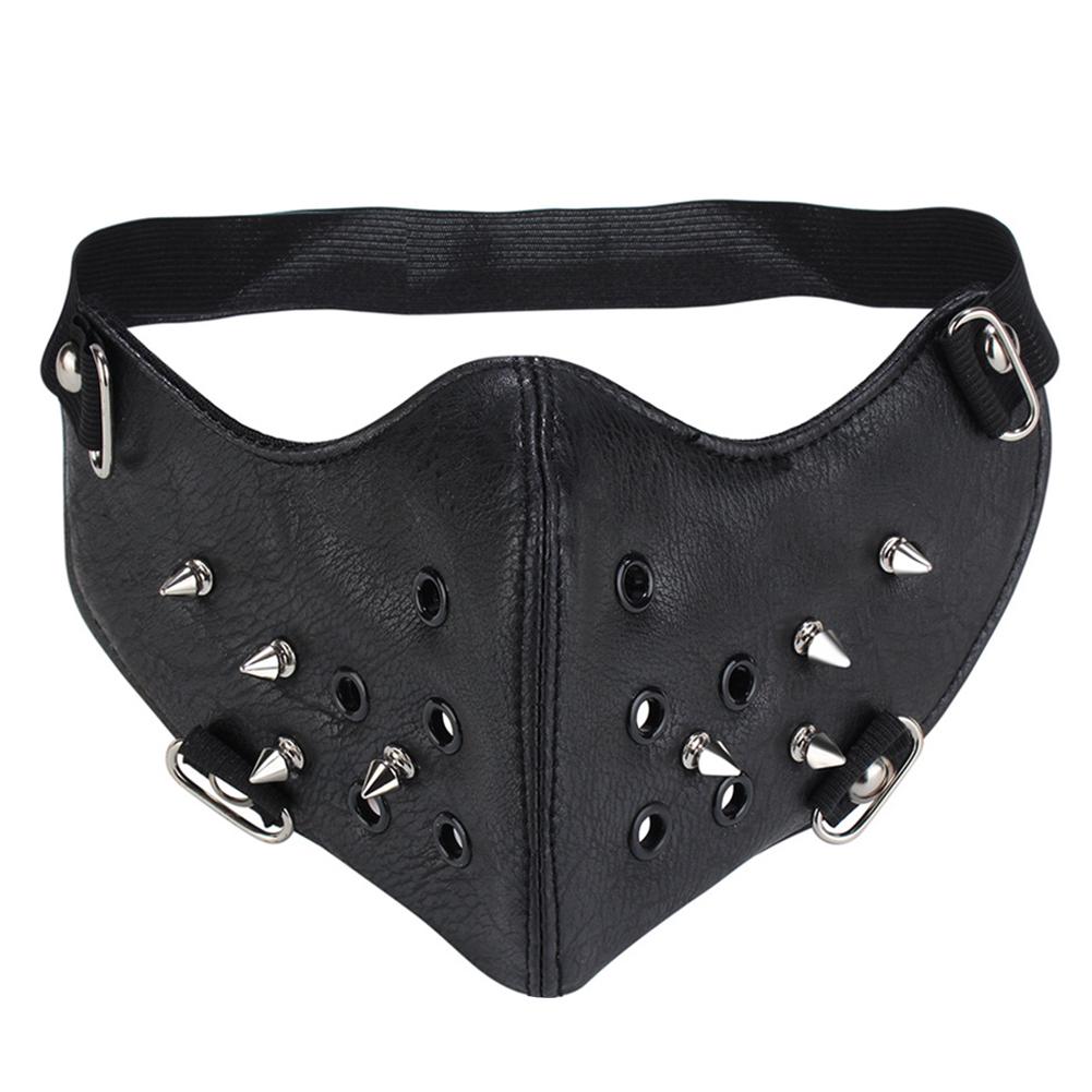 Unisex Faux Leather Rivet Spike Face Cover Halloween Party Prop