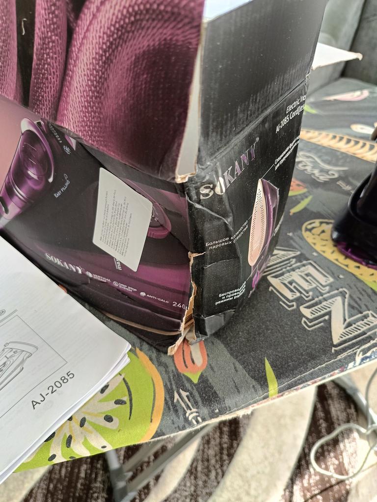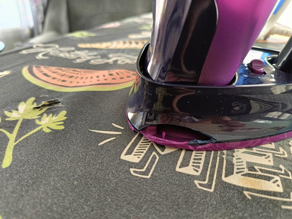 Das Bügeleisen kam zerbrochen und nicht funktionsfähig an.