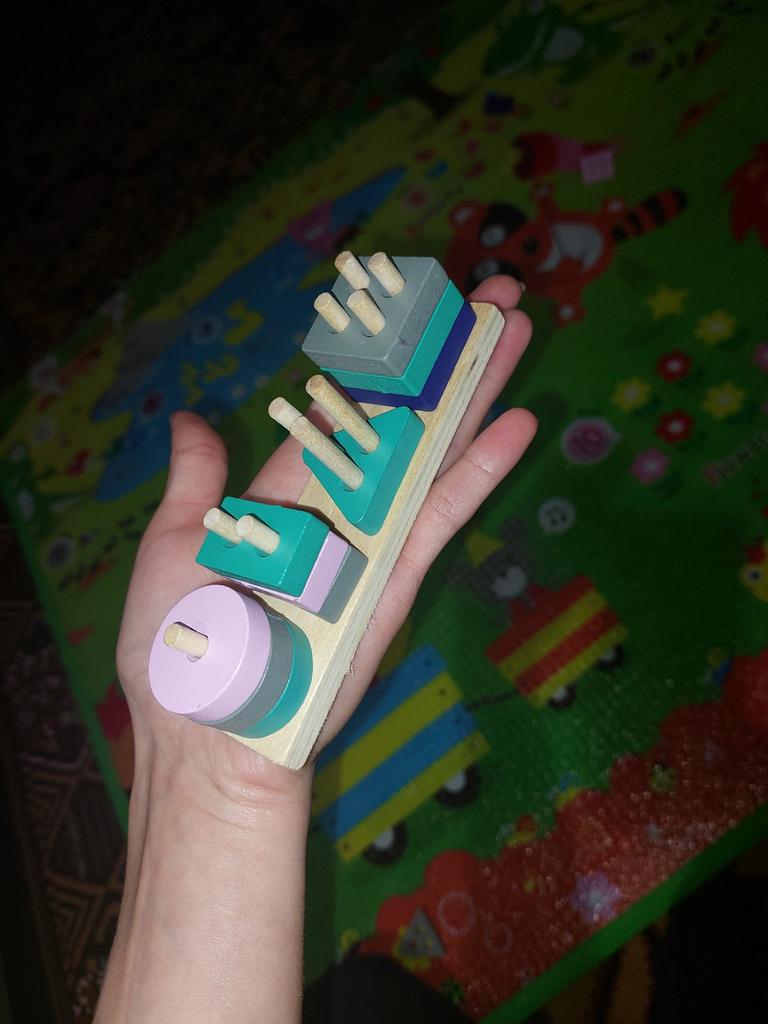Interessantes, lehrreiches Brettspielzeug für Kinder im Alter von 2-3 Jahren. Entspricht der Beschreibung (klein) und der Abbildung.Das Material ist stabil, wackelt nicht. Nahm als Unterrichtsmaterial über Sensorik und Mathematik. Ich habe 5 Sterne gesetzt. Ich empfehle