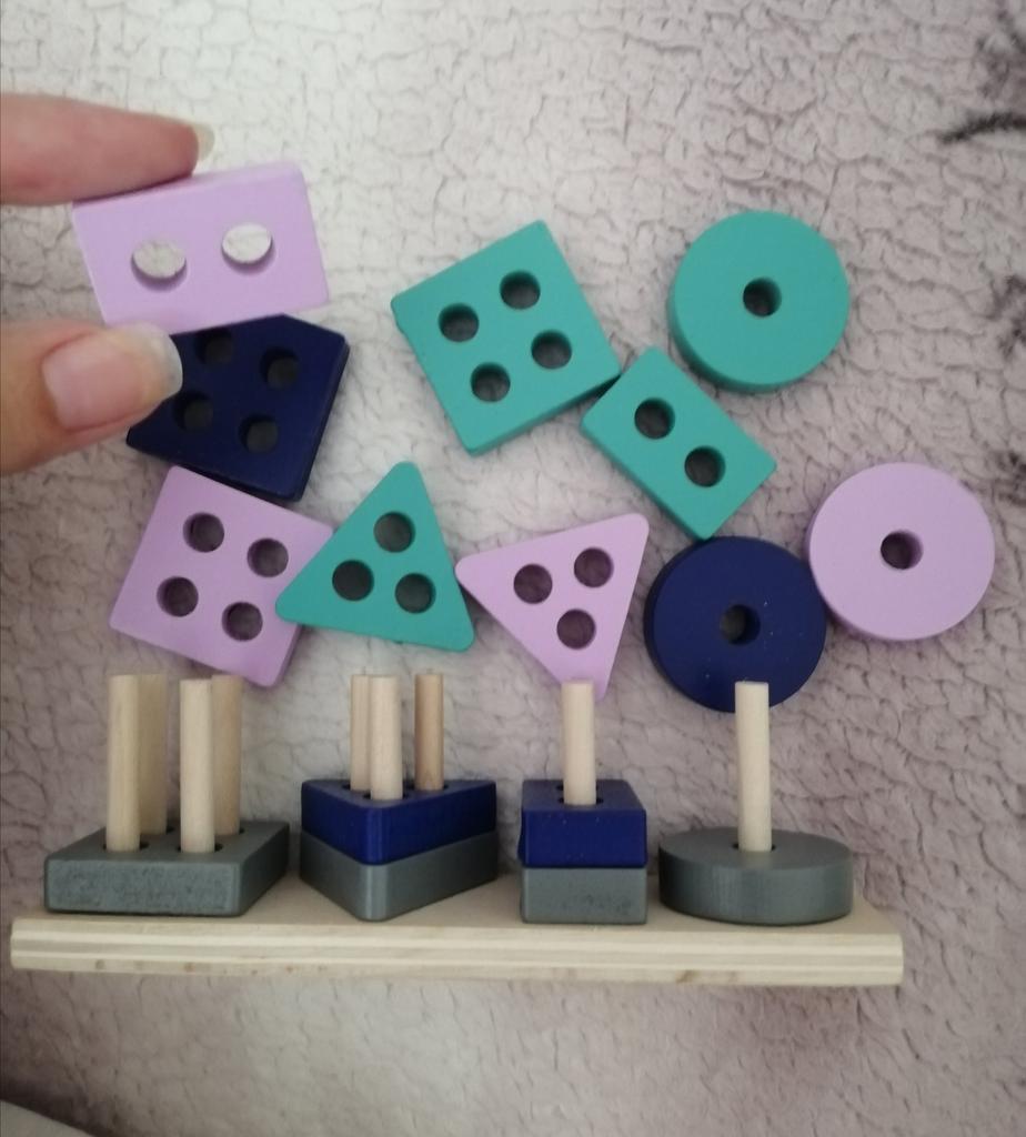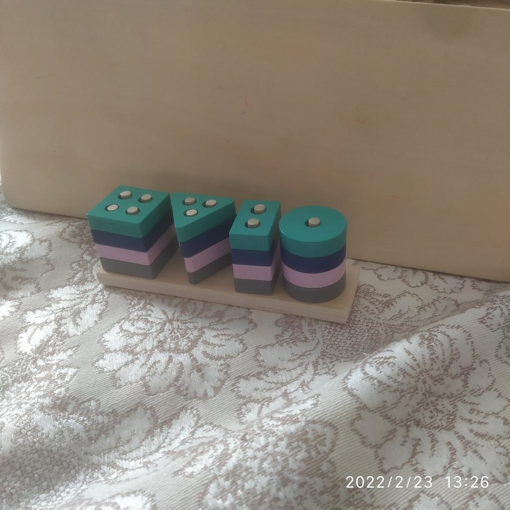 Kleines Holzkonstruktionsspielzeug für Zweijährige. 👍💝 Es ermöglicht Ihnen, Formen zu lernen und Teile zusammenzusetzen. 💐👏 Der Sockel misst 13 cm / 3,5 cm und hat eine Höhe von 4 cm. Ups.✌️💘