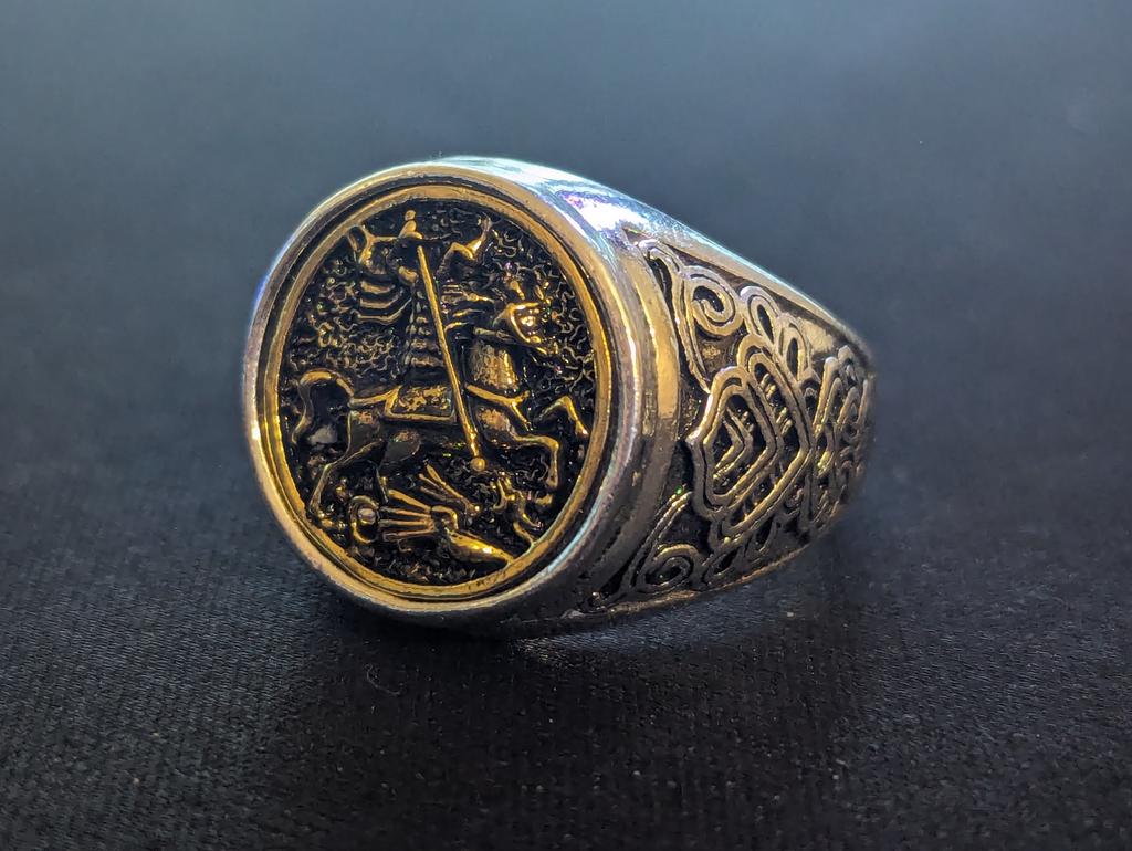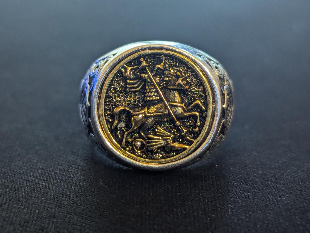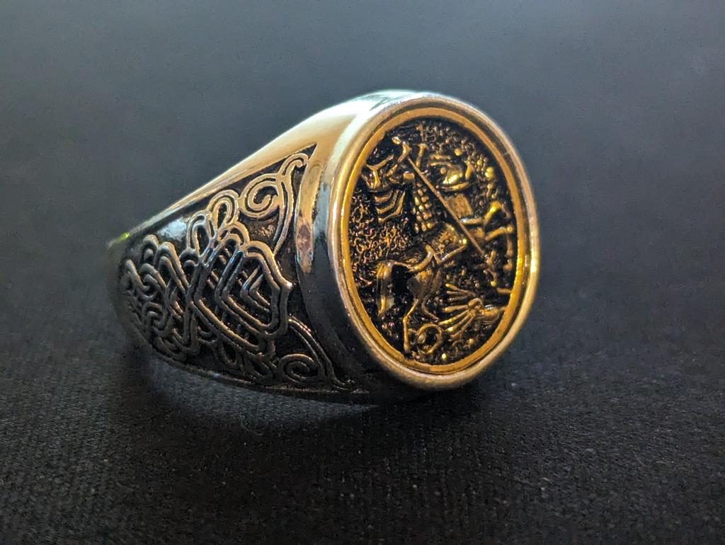 Herren Gold Silber Farbe Zweifarbiger Punk Ring Heroischer Ritter Party Hip Pop Schmuck