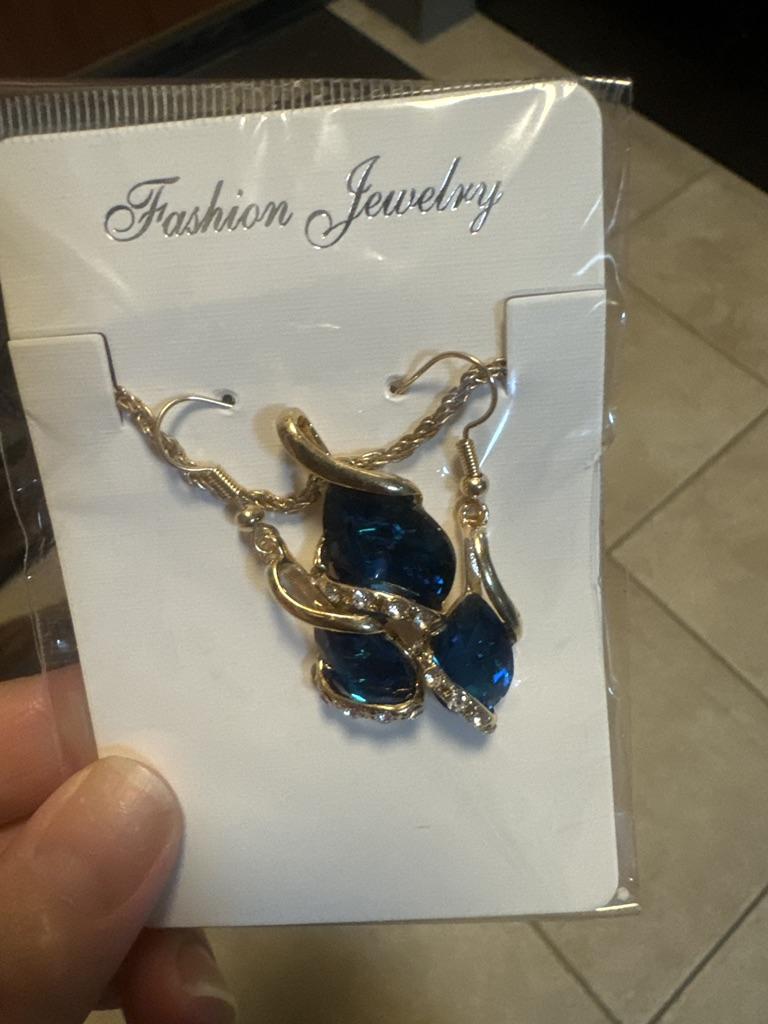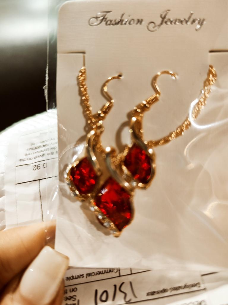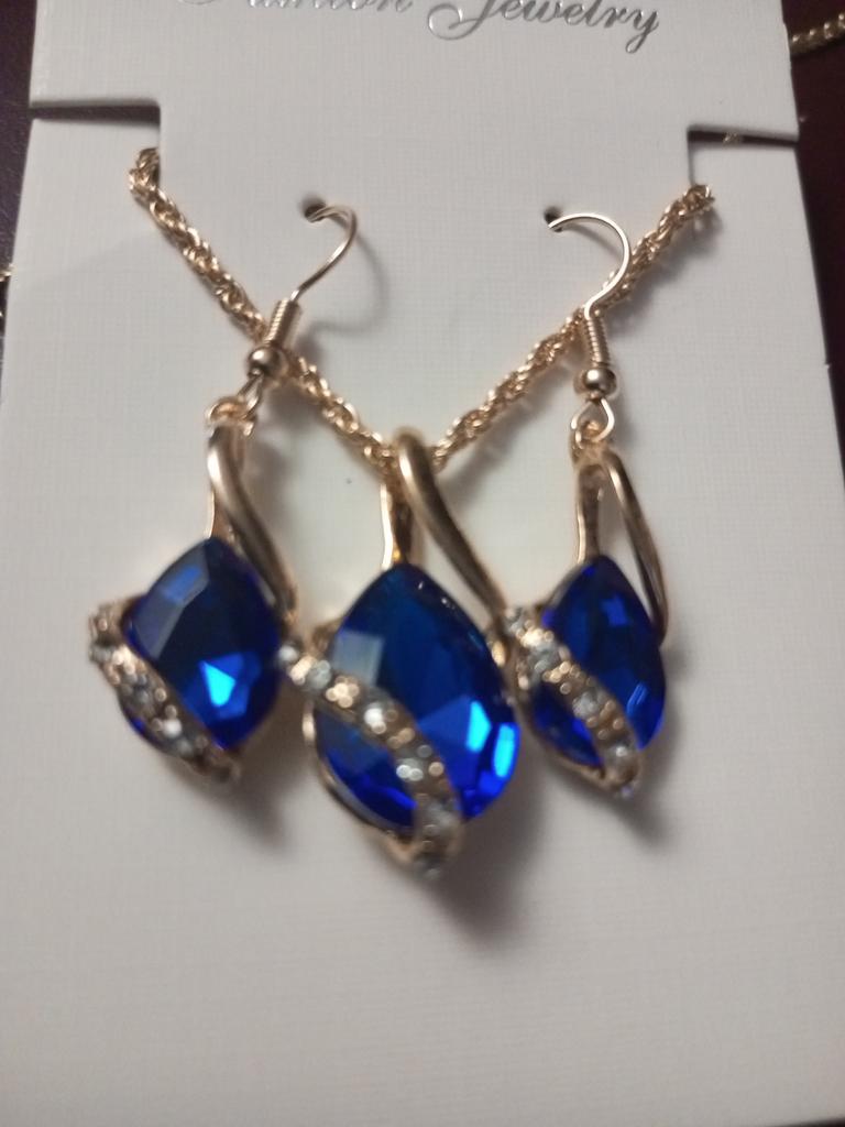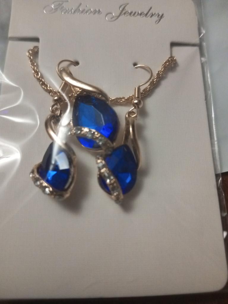 Schön und gut gemacht, alles komplett! Sehr schwere Ohrringe und die Halskette, wo sie mit der Haut in Berührung kommt, wird vom ersten Gebrauch an schwarz. Ich weiß nicht, wenn Sie 2,70 € zum Wegwerfen haben, ist das in Ordnung! 😊